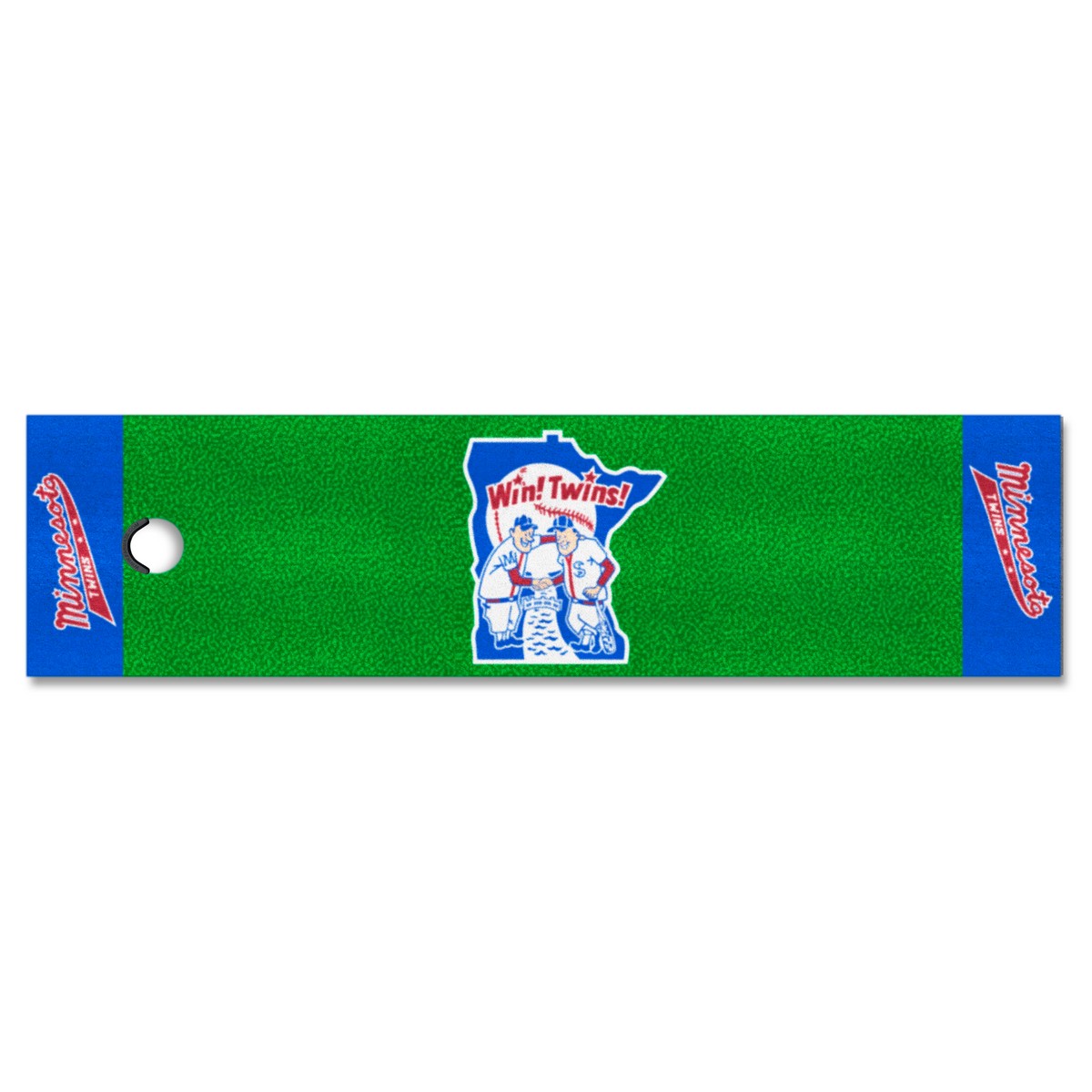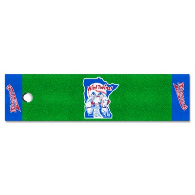 | Minnesota Twins Putting Green Mat - 1.5ft. x 6ft.1978 Realistic putting surface (11* on golf Stimpmeter) Includes putting target barrier/backstop Durable vinyl backing keeps mat in place 100% Nylon Face Doubles as a runner when not in use Officially licensed and chromojet printed in true team colors MLBCC - Minnesota Twins in Minnesota MLB Major League Baseball |