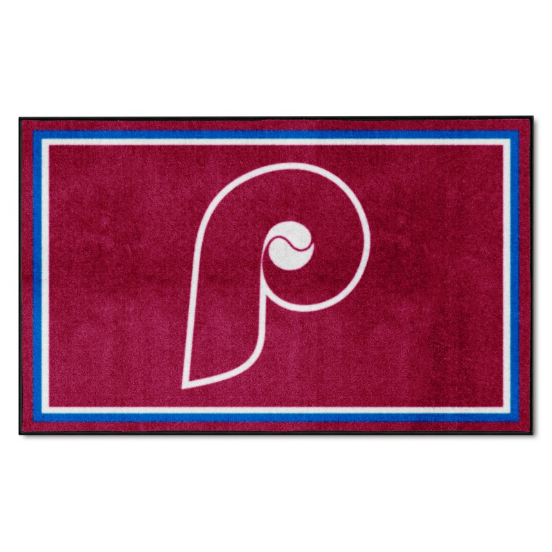 | Philadelphia Phillies 4ft. x 6ft. Plush Area Rug1987 23.5 oz., 100% Nylon Face Latex backing for a durable and longer-lasting product Machine made in the USA Non-skid backing to ensure stability Vacuum regularly and spot clean Chromojet-printed in true team colors MLBCC - Philadelphia Phillies in Pennsylvania MLB Major League Baseball |