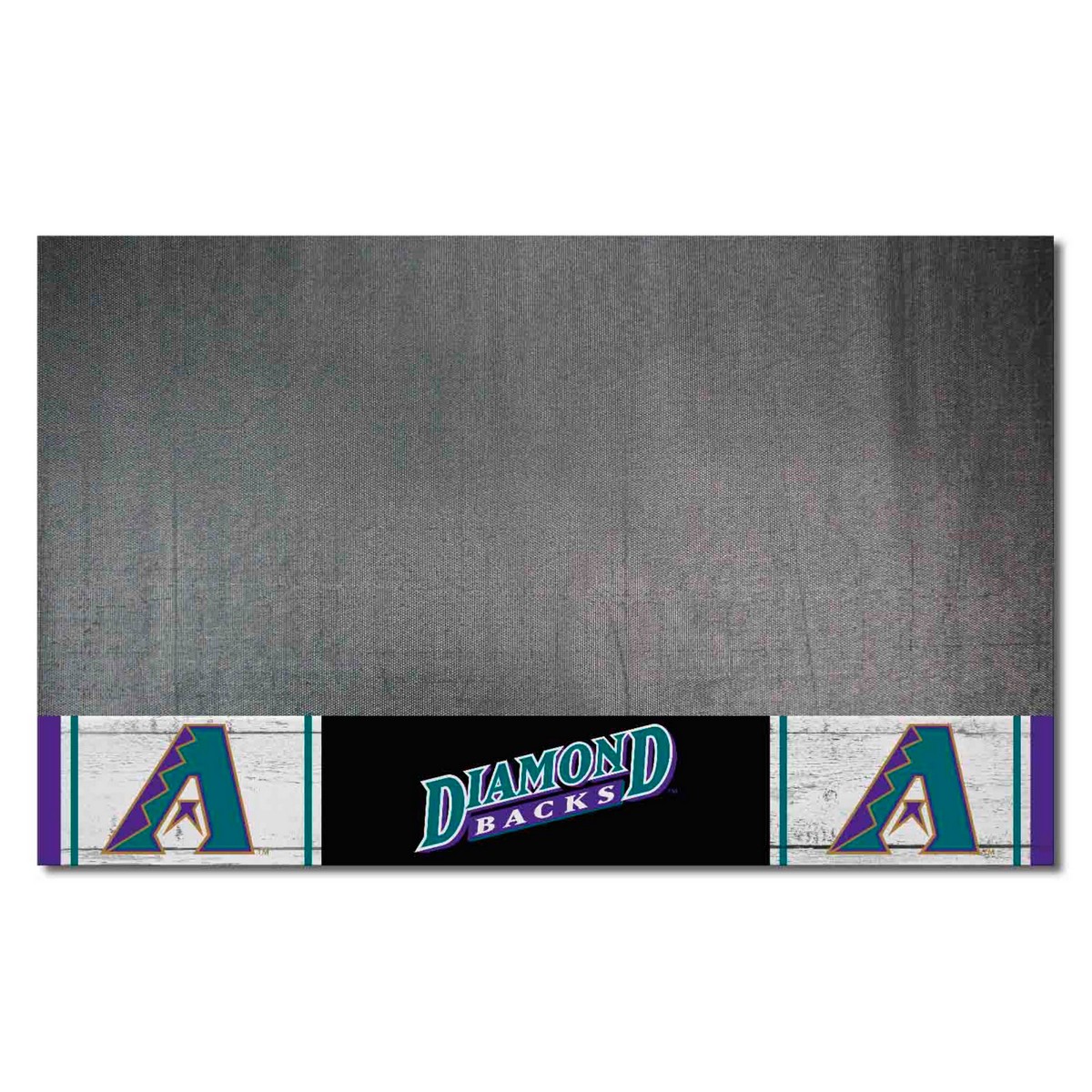 | Arizona Diamondbacks Vinyl Grill Mat - 26in. x 42in. 1998 Retro Logo Made of 100% vinyl Universal size - fits under most grills Prevents spills from soaking in and staining Oil, flame, and UV resistant Non-skid surface keeps grill in place Easily cleaned with a water hose MLBCC - Arizona Diamondbacks in Arizona MLB Major League Baseball |