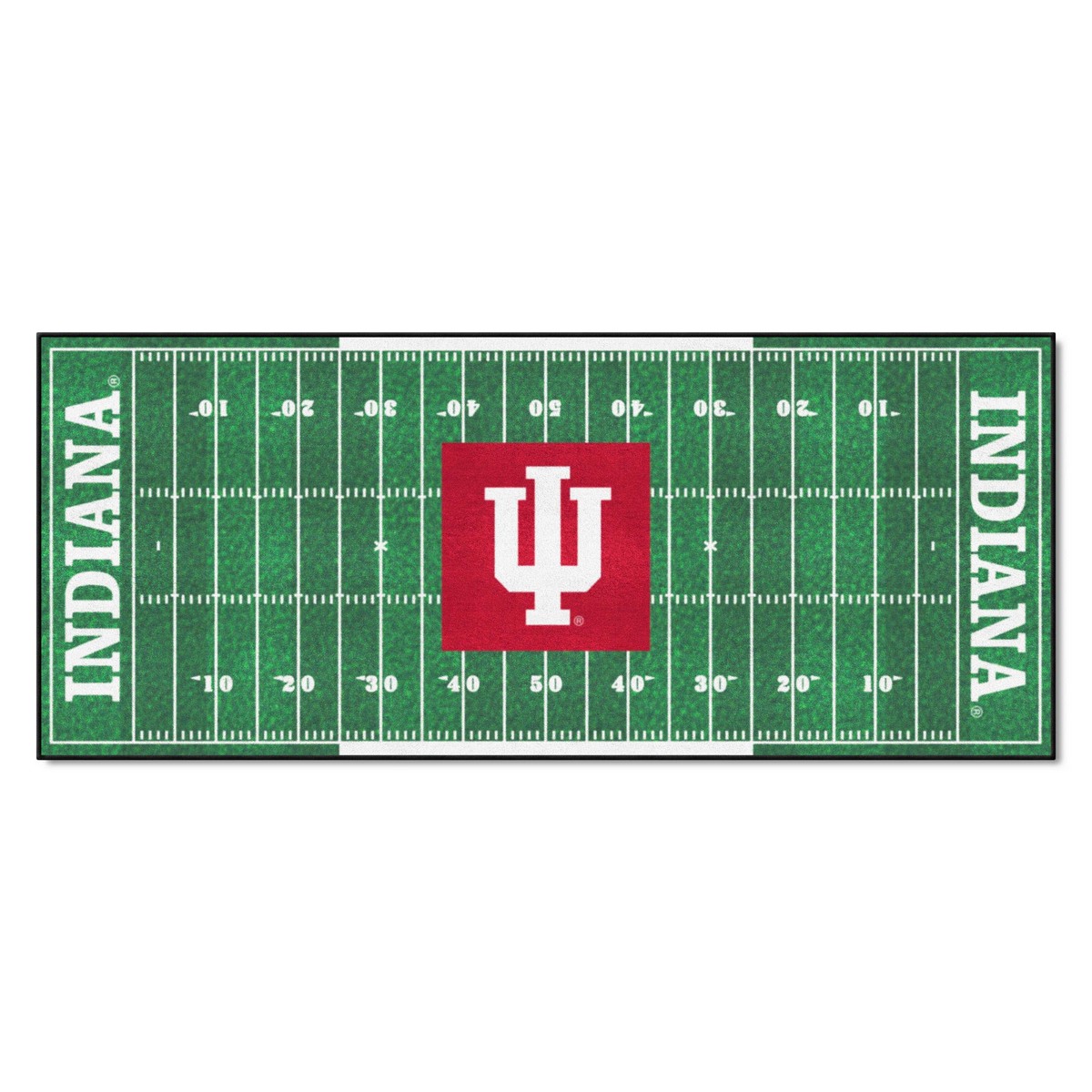 | Indiana Hooisers Field Runner Mat - 30in. x 72in. 9 Ounce, 100 % Nylon Face Recycled vinyl backing for a durable and longer-lasting product Machine made and tufted in the USA Non-skid backing with serged borders for added durability Machine washable; vacuum regularly and spot clean for any easy and quick clean Officially licensed and chromojet-printed in true team colors for vibrant, lasting color Indiana University in Indiana |
