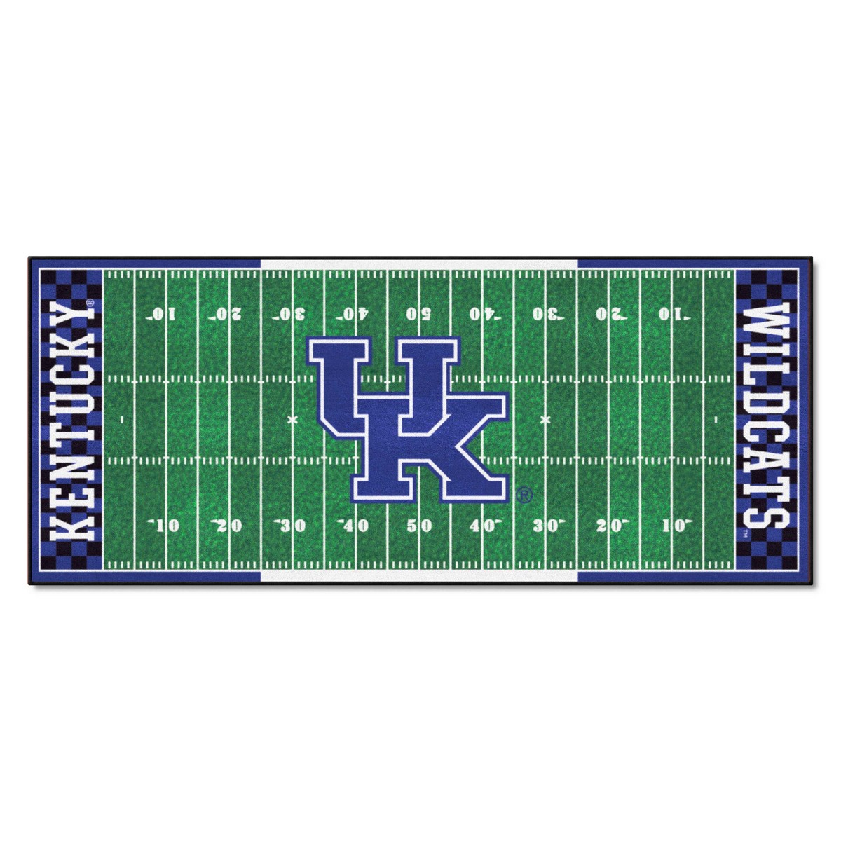 | Kentucky Wildcats Field Runner Mat - 30in. x 72in. 9 Ounce, 100 % Nylon Face Recycled vinyl backing for a durable and longer-lasting product Machine made and tufted in the USA Non-skid backing with serged borders for added durability Machine washable; vacuum regularly and spot clean for any easy and quick clean Officially licensed and chromojet-printed in true team colors for vibrant, lasting color University of Kentucky in Kentucky |