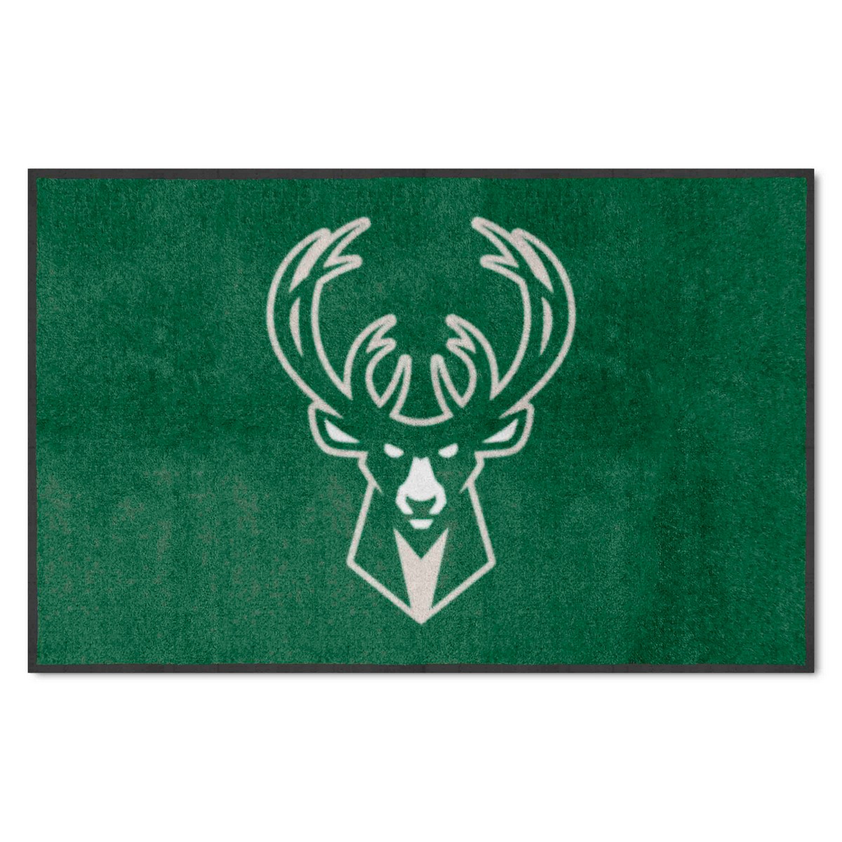 | Milwaukee Bucks 4X6 High-Traffic Mat with Durable Rubber Backing - Landscape Orientation Plush carpet provides better absorption and vibrant team colorfastness All-rubber backing and border for long lasting performance and maximum durability Gripper pattern backing to provide a non-slip grip Simple to clean, just vacuum, use carpet cleaner or commercially wash Made in the USA Durable mat is great for areas of high foot traffic NBA - Milwaukee Bucks in Wisconsin NBA National Basketball Association |