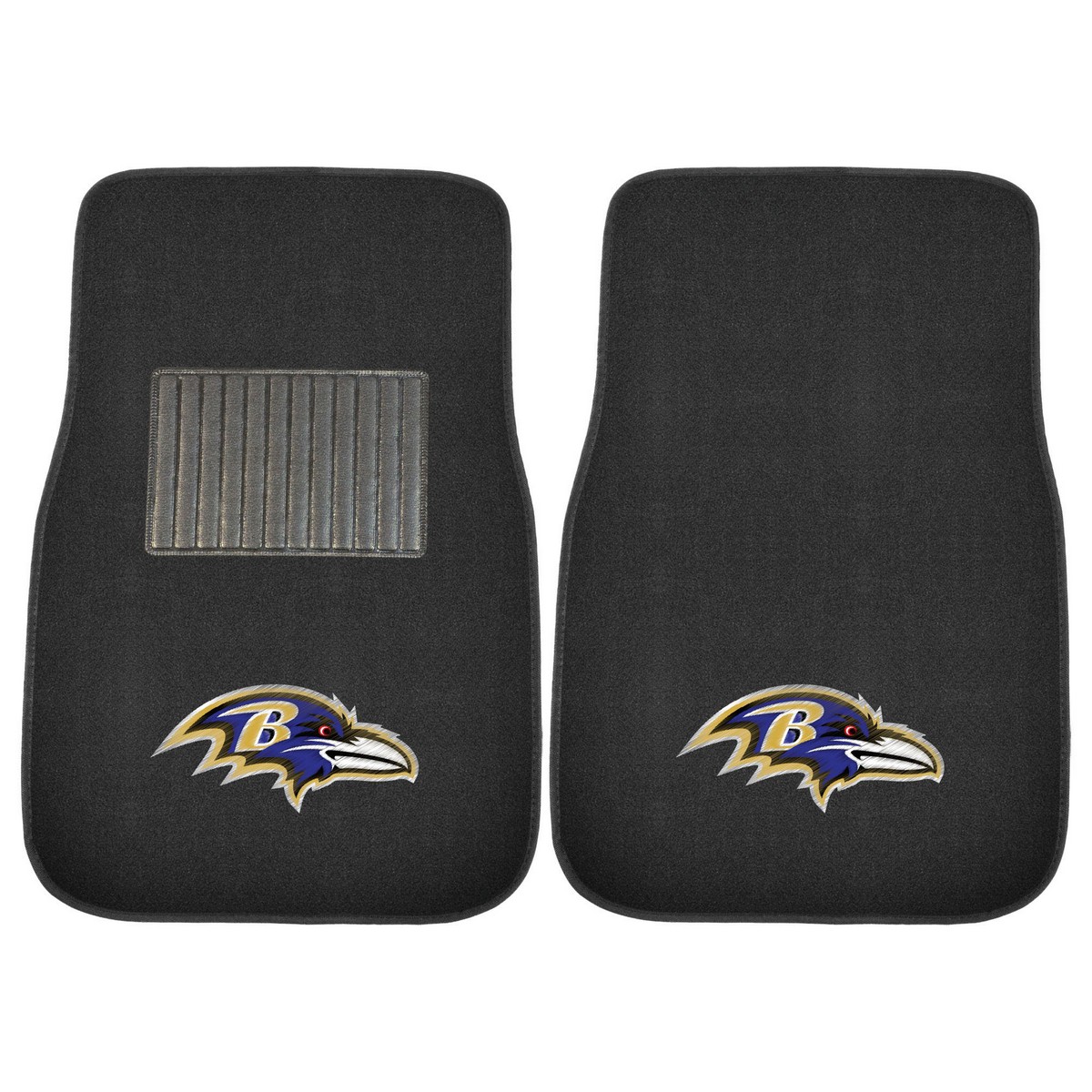 | Baltimore Ravens Embroidered Car Mat Set - 2 Pieces Made of polyester face with vinyl backing Embroidered team logo that will not peel or fade Nibbed backing keeps mat in place Heel pad on driver side, adds durability and provides extra safety Easily washed with a vacuum or water hose, just let them air dry Sold in pairs NFL - Baltimore Ravens in Maryland WARNING: This product can expose you to chemicals including, DINP, which is known to the State of California to casue cancer. For more information, go to www.P65Warnings.ca.gov NFL National Football League |