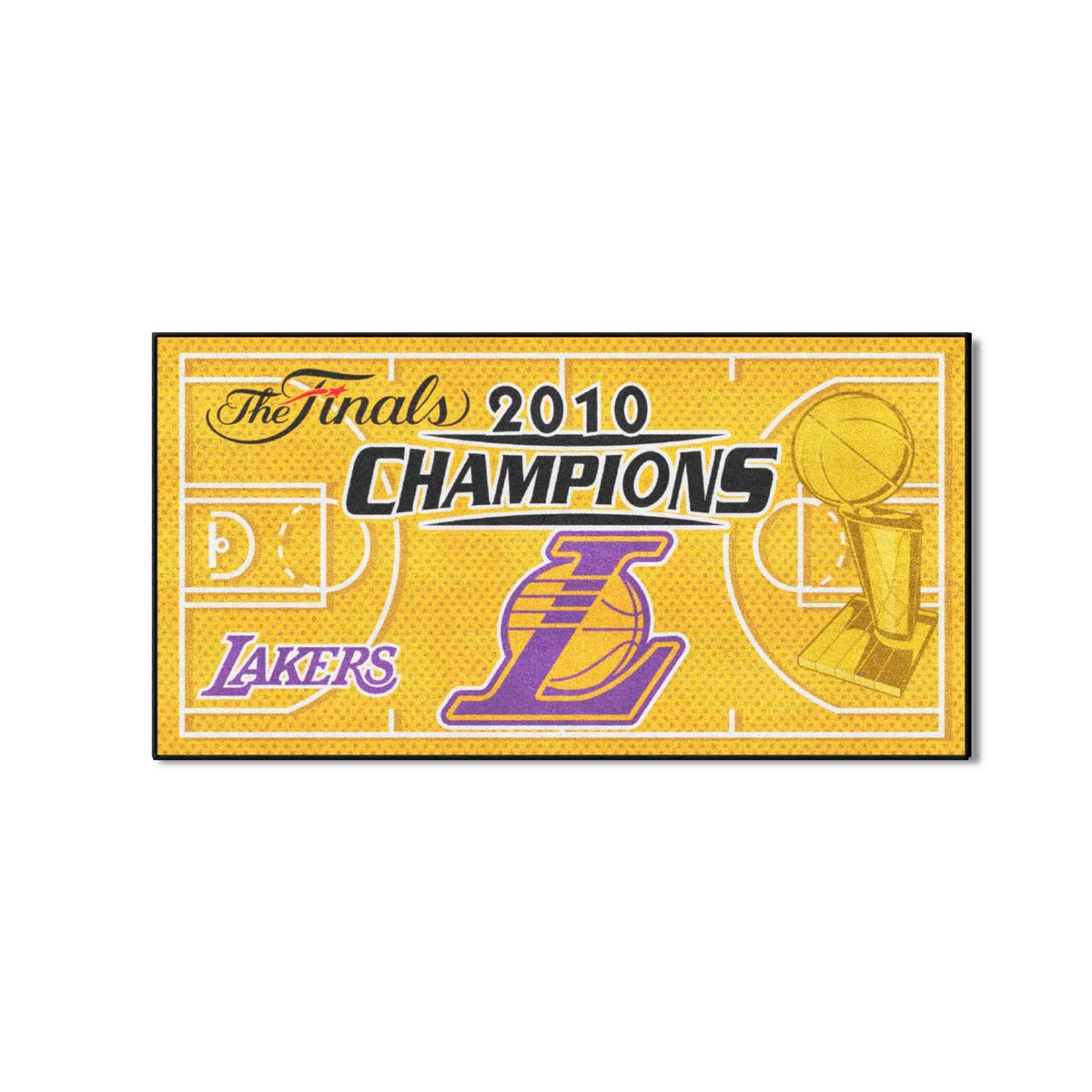 | Los Angeles Lakers 2010 NBA Champions Court Runner Rug - 24in. x 44in. 9 Ounce, 100 % Nylon Face Recycled vinyl backing for a durable and longer-lasting product Machine made and tufted in the USA Non-skid backing with serged borders for added durability Machine washable; vacuum regularly and spot clean for any easy and quick clean Officially licensed and chromojet-printed in true team colors for vibrant, lasting color NBA - Los Angeles Lakers in California NBA National Basketball Association |