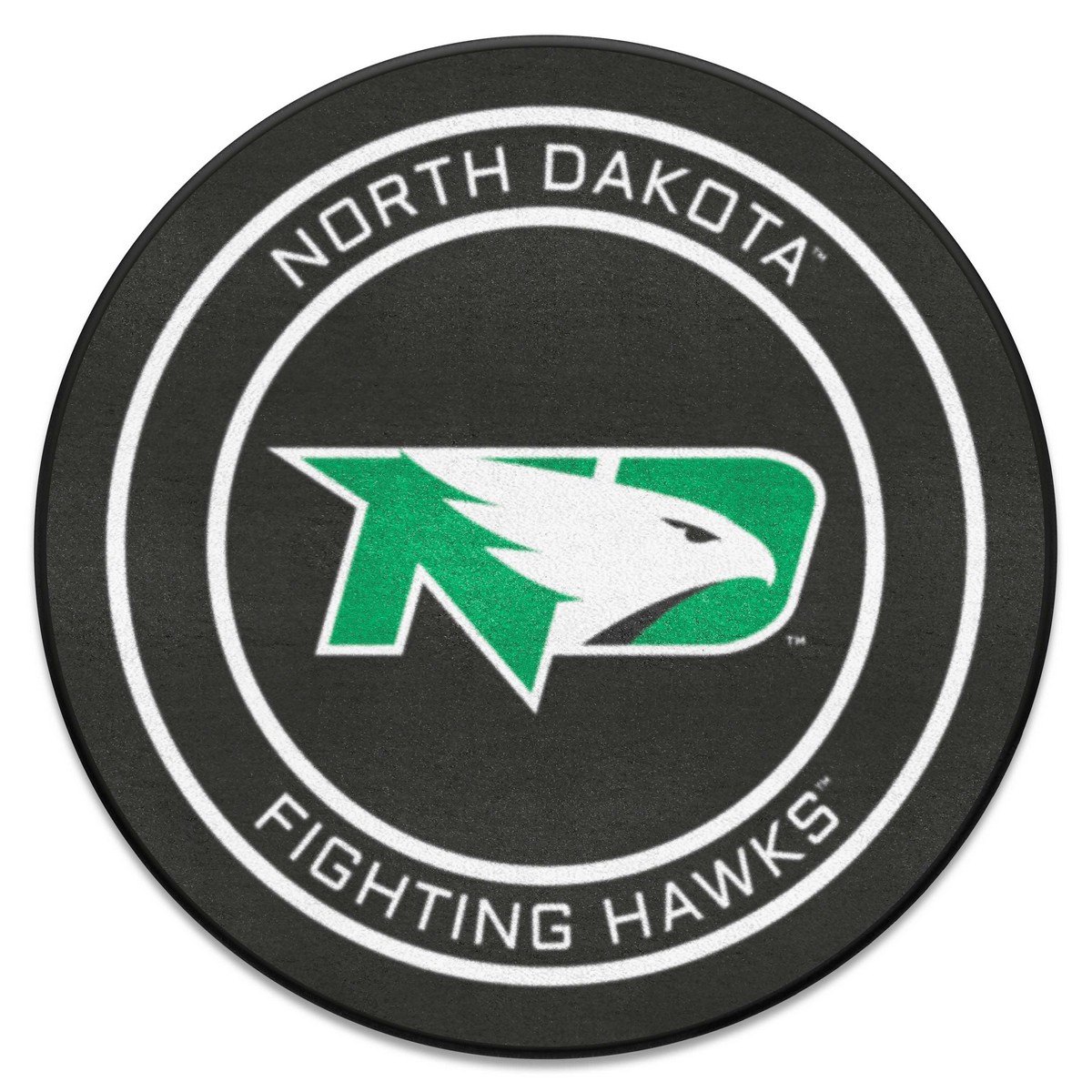 | North Dakota Fighting Hawks Hockey Puck Rug - 27in. Diameter 9 Ounce, 100 % Nylon Face Recycled vinyl backing for a durable and longer-lasting product Machine made and tufted in the USA Non-skid backing with taped borders for added durability Machine washable; vacuum regularly and spot clean for any easy and quick clean Officially licensed and chromojet-printed in true team colors for vibrant, lasting color University of North Dakota in North Dakota |