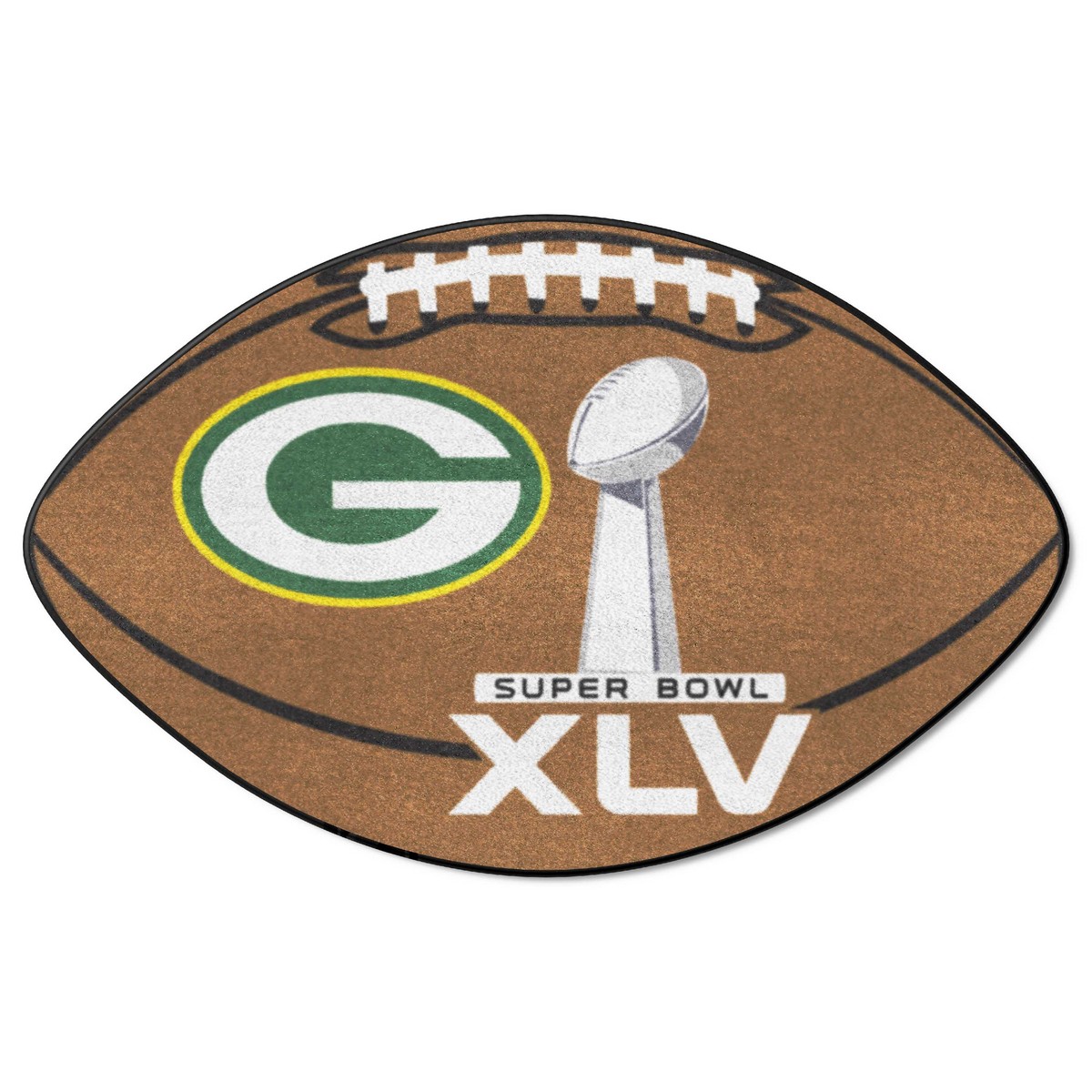 | Green Bay Packers Football Rug - 20.5in. x 32.5in., 2011 Super Bowl XLV Champions 9 Ounce, 100 % Nylon Face Recycled vinyl backing for a durable and longer-lasting product Machine made and tufted in the USA Non-skid backing with taped borders for added durability Machine washable; vacuum regularly and spot clean for any easy and quick clean Officially licensed and chromojet-printed in true team colors for vibrant, lasting color NFL - Green Bay Packers in Wisconsin NFL National Football League |
