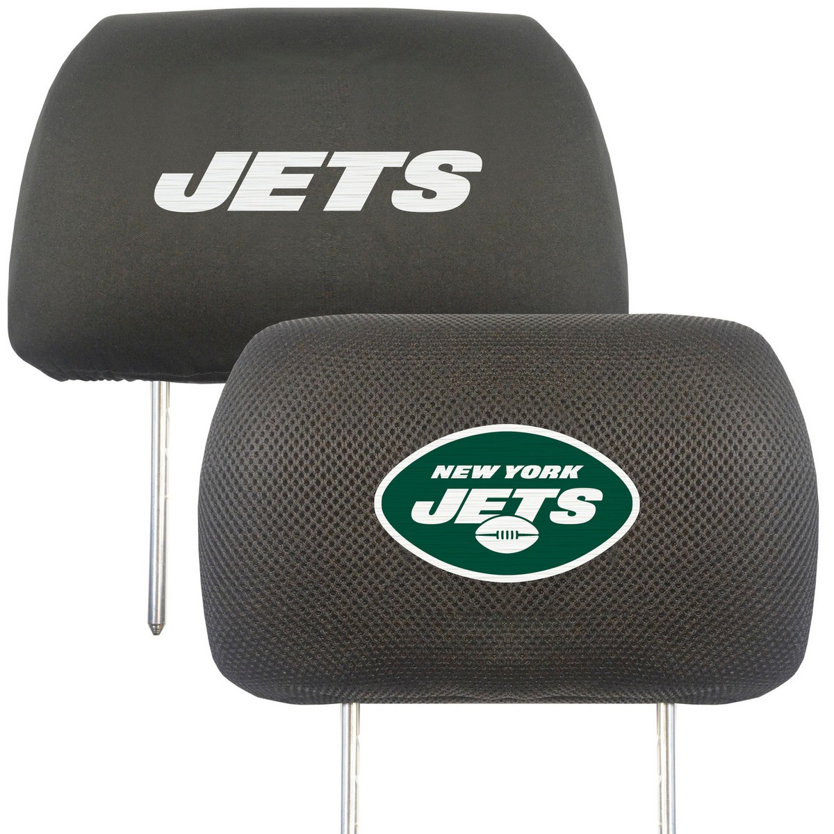 | New York Jets Embroidered Head Rest Cover Set - 2 Pieces Made of comfortable material - mesh on one side and soft polyester on the other Logo is embroidered on one side and the team name is embroidered on the other Elastic band ensures a snug fit, so instillation is a breeze Machine washable, just let them air dry Sold in pairs Embroidered logo will not peel or fade NFL - New York Jets in New Jersey NFL National Football League |