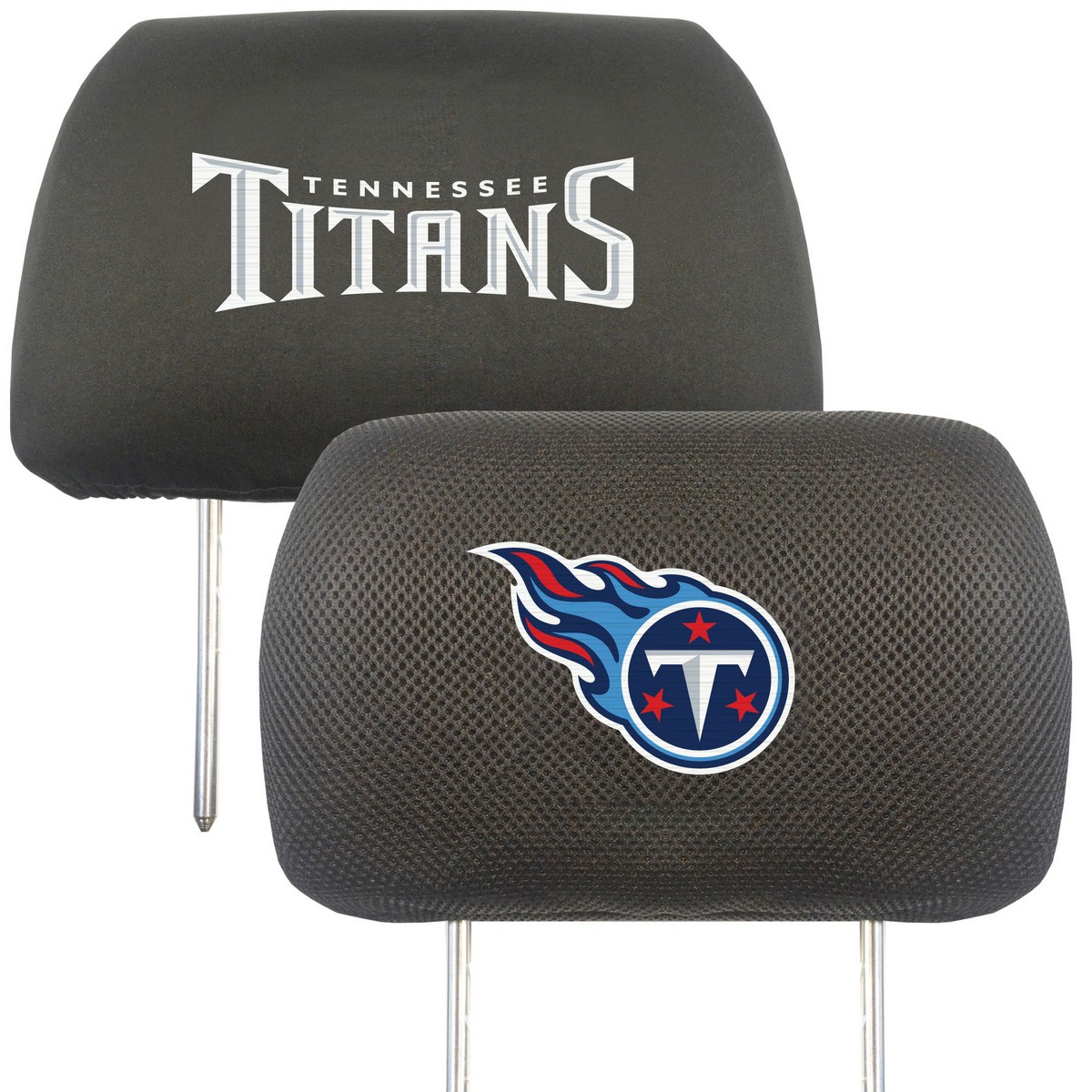 | Tennessee Titans Embroidered Head Rest Cover Set - 2 Pieces Made of comfortable material - mesh on one side and soft polyester on the other Logo is embroidered on one side and the team name is embroidered on the other Elastic band ensures a snug fit, so instillation is a breeze Machine washable, just let them air dry Sold in pairs Embroidered logo will not peel or fade NFL - Tennessee Titans in Tennessee NFL National Football League |