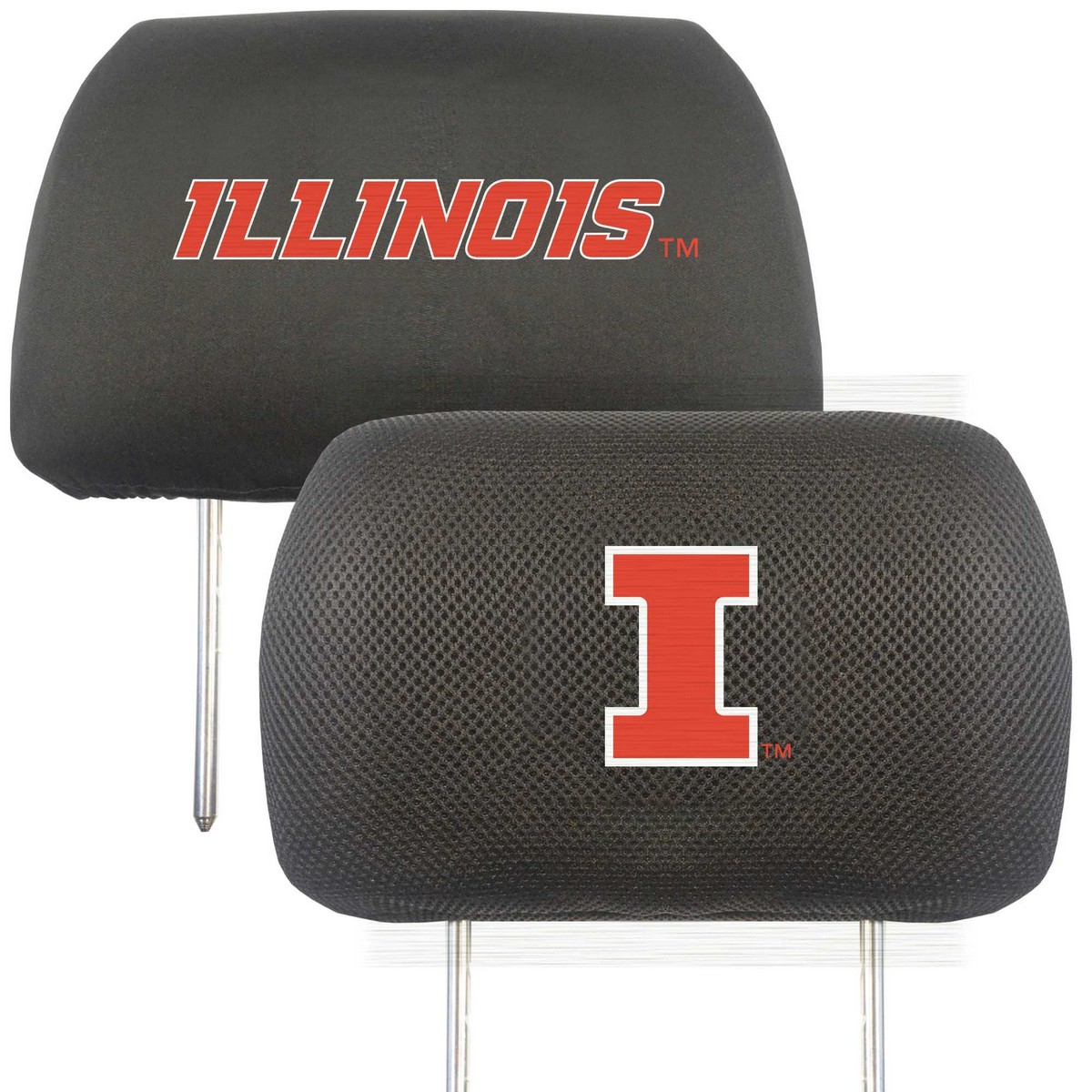 | Illinois Illini Embroidered Head Rest Cover Set - 2 Pieces Made of comfortable material - mesh on one side and soft polyester on the other Logo is embroidered on one side and the team name is embroidered on the other Elastic band ensures a snug fit, so instillation is a breeze Machine washable, just let them air dry Sold in pairs Embroidered logo will not peel or fade University of Illinois in Illinois |