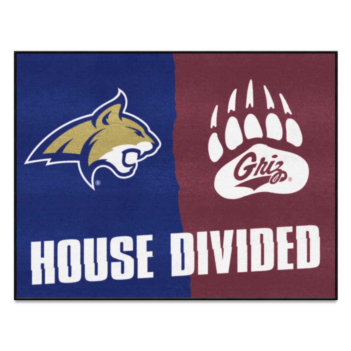 | House Divided - Montana / Montana State House Divided House Divided Rug - 34 in. x 42.5 in. 9 Ounce, 100 % Nylon Face Recycled vinyl backing for a durable and longer-lasting product Machine made and tufted in the USA Non-skid backing with serged borders for added durability Machine washable; vacuum regularly and spot clean for any easy and quick clean Officially licensed and chromojet-printed in true team colors for vibrant, lasting color House Divided - Montana / Montana State in Montana |