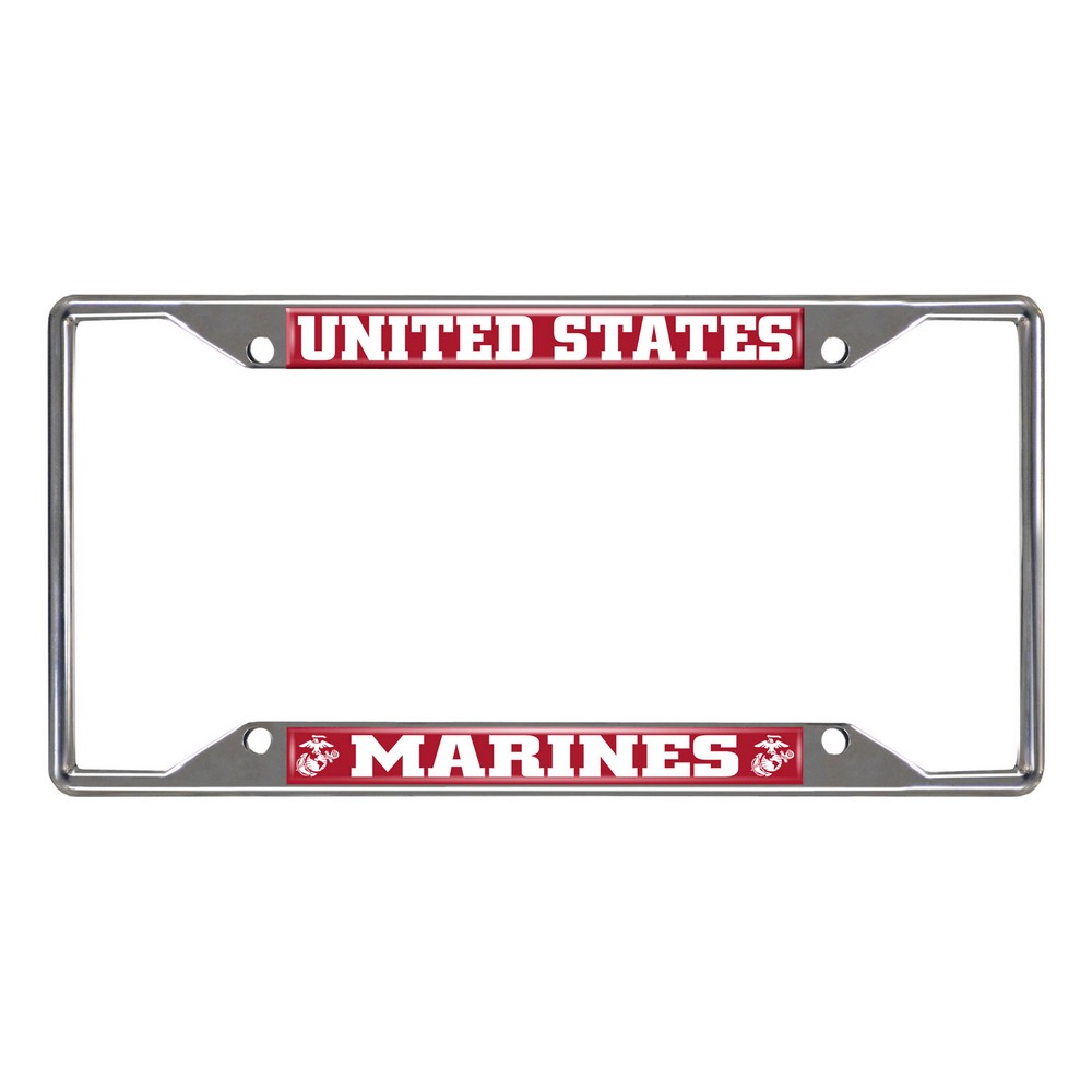| U.S. Marines Chrome Metal License Plate Frame, 6.25in x 12.25in Made of chrome metal with a durable finish that resists the elements Team logo is domed and features vibrant colors that catch the eye 4 pre-drilled holes ensure a safe and secure fit, plus no rattling noises while driving Slimline design helps keep registration tag visible Fits most standard plates, measures 6.25" x 12.25" Screws not included U.S. Marines in N/A |