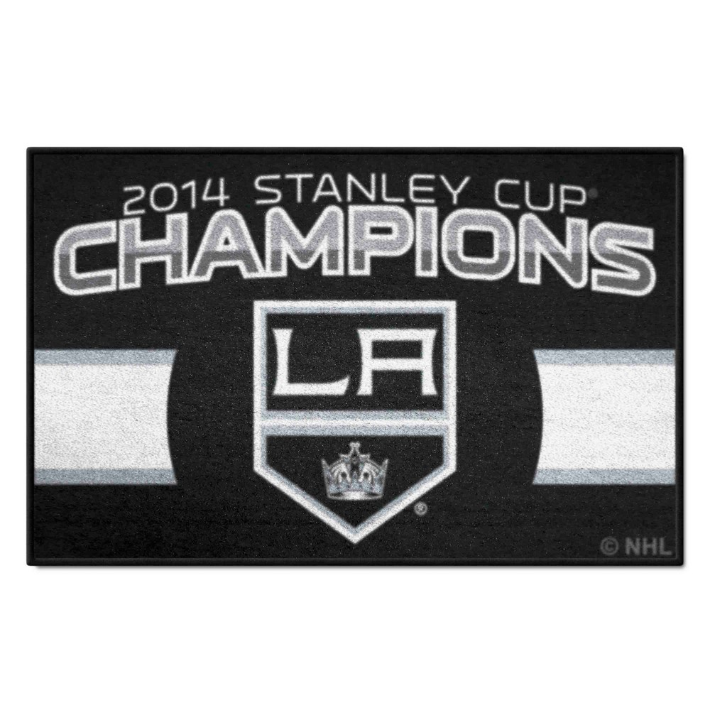 | Los Angeles Kings Starter Mat Accent Rug - 19in. x 30in., 2014 NHL Stanley Cup Champions 9 Ounce, 100 % Nylon Face Recycled vinyl backing for a durable and longer-lasting product Machine made and tufted in the USA Non-skid backing with serged borders for added durability Machine washable; vacuum regularly and spot clean for any easy and quick clean Officially licensed and chromojet-printed in true team colors for vibrant, lasting color NHL - Los Angeles Kings in California NHL National Hockey League |