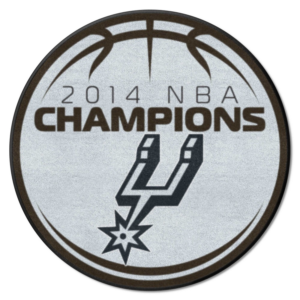 | San Antonio Spurs 2014 NBA Champions Basketball Rug - 27in. Diameter 9 Ounce, 100 % Nylon Face Recycled vinyl backing for a durable and longer-lasting product Machine made and tufted in the USA Non-skid backing with taped borders for added durability Machine washable; vacuum regularly and spot clean for any easy and quick clean Officially licensed and chromojet-printed in true team colors for vibrant, lasting color NBA - San Antonio Spurs in Texas NBA National Basketball Association |