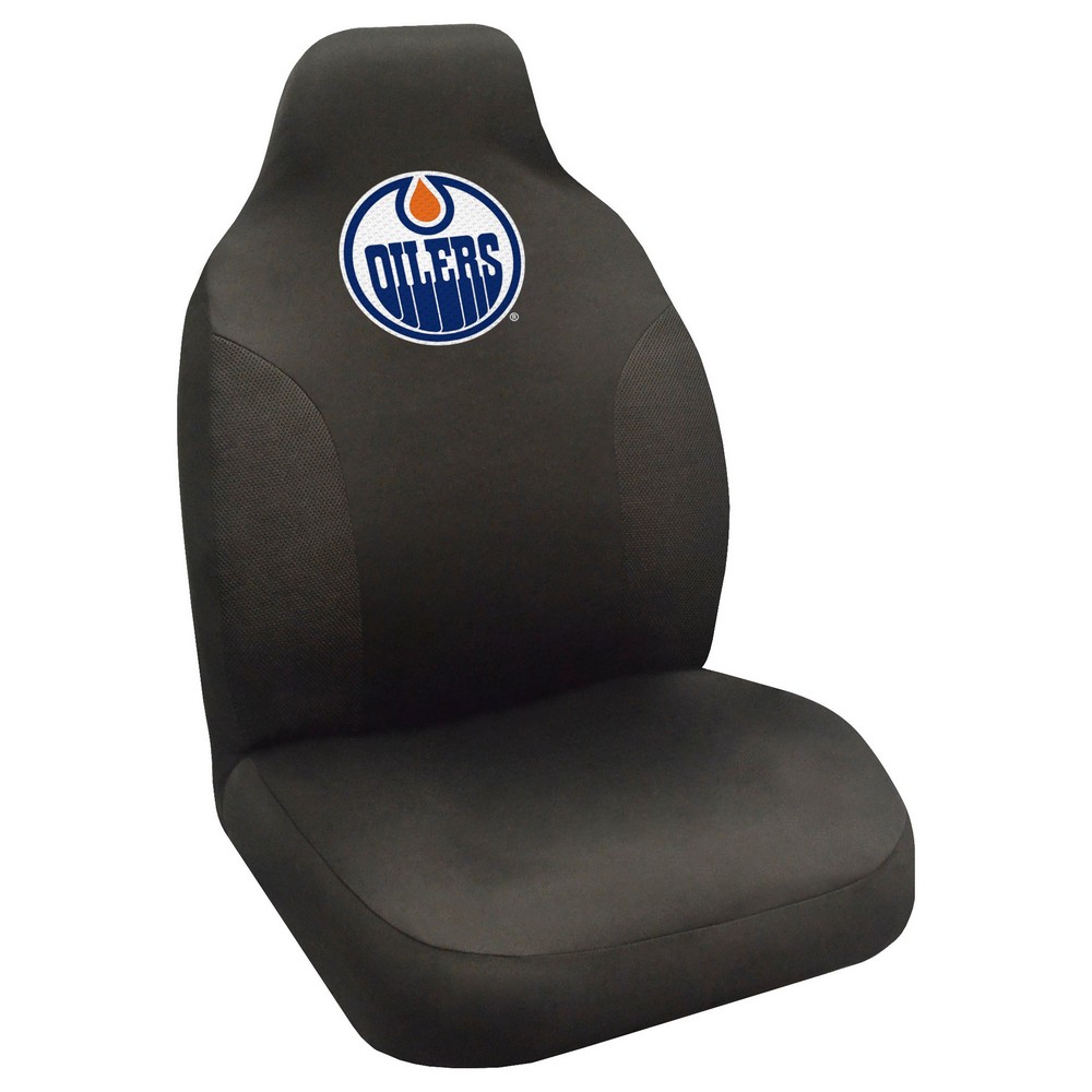 | Edmonton Oilers Oilers Embroidered Seat Cover Made of soft stretchy material and features soft mesh side panels for breathability and style Material and under-seat hooks ensure a nice snug fit Team logo is embroidered on the front; will not peel or fade Sold individually Attaches without use of tools for an easy on and off Compatible with most vehicles NHL - Edmonton Oilers in Alberta NHL National Hockey League |
