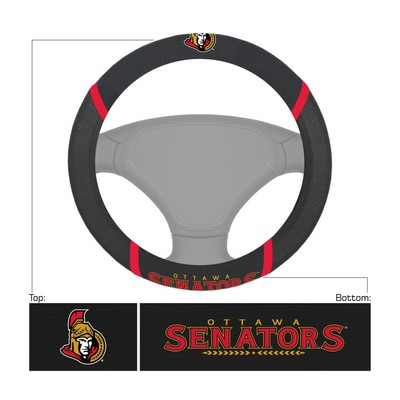 | Ottawa Senators Embroidered Steering Wheel Cover Made of soft grippy mesh and faux suede Vibrant embroidered logos on the top and team names on the bottom Keeps your hands cool in the summer and warm in the winter Fits most cars, trucks, vans and SUVs Strong stitching along edges for sustained sturdiness Easy to install NHL - Ottawa Senators in Ontario NHL National Hockey League |