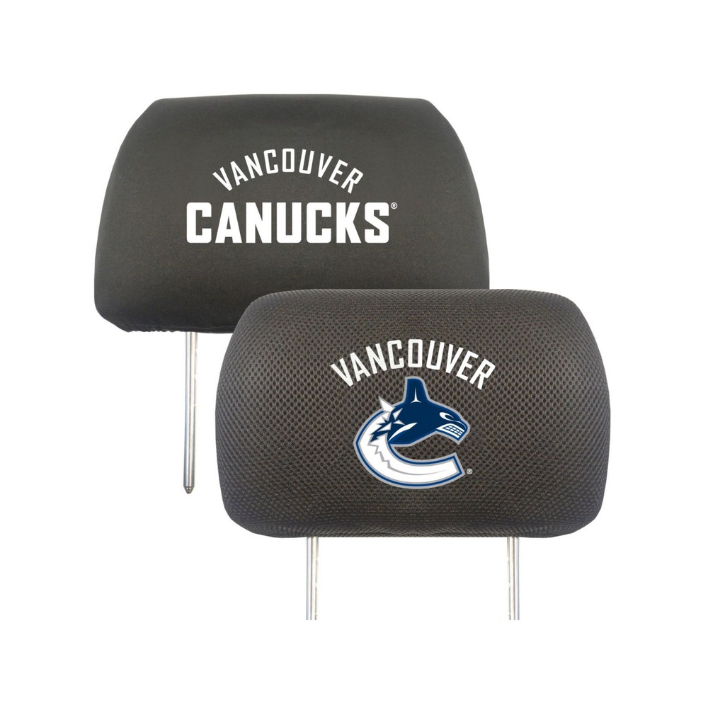 | Vancouver Canucks Embroidered Head Rest Cover Set - 2 Pieces Made of comfortable material - mesh on one side and soft polyester on the other Logo is embroidered on one side and the team name is embroidered on the other Elastic band ensures a snug fit, so instillation is a breeze Machine washable, just let them air dry Sold in pairs Embroidered logo will not peel or fade NHL - Vancouver Canucks in British Columbia NHL National Hockey League |