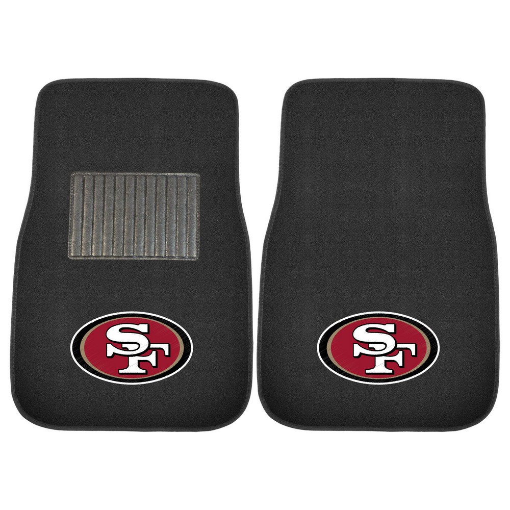 | San Francisco 49ers Embroidered Car Mat Set - 2 Pieces Made of polyester face with vinyl backing Embroidered team logo that will not peel or fade Nibbed backing keeps mat in place Heel pad on driver side, adds durability and provides extra safety Easily washed with a vacuum or water hose, just let them air dry Sold in pairs NFL - San Francisco 49ers in California WARNING: This product can expose you to chemicals including, DINP, which is known to the State of California to casue cancer. For more information, go to www.P65Warnings.ca.gov NFL National Football League |