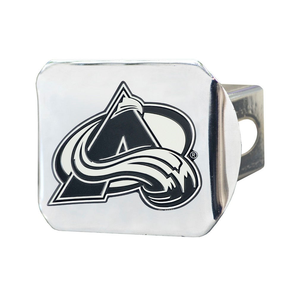| Colorado Avalanche Chrome Metal Hitch Cover with Chrome Metal 3D Emblem Completely wraps your hitch to keep all debris out Fits all 2 in. Class III hitches for a secure installation Made of chromed metal for a sleek design 3-D molded design to clearly outline the team logo Attaches without use of tools for an easy on and off; pin is not included Keeps your hitch clear of debris NHL - Colorado Avalanche in Colorado NHL National Hockey League |