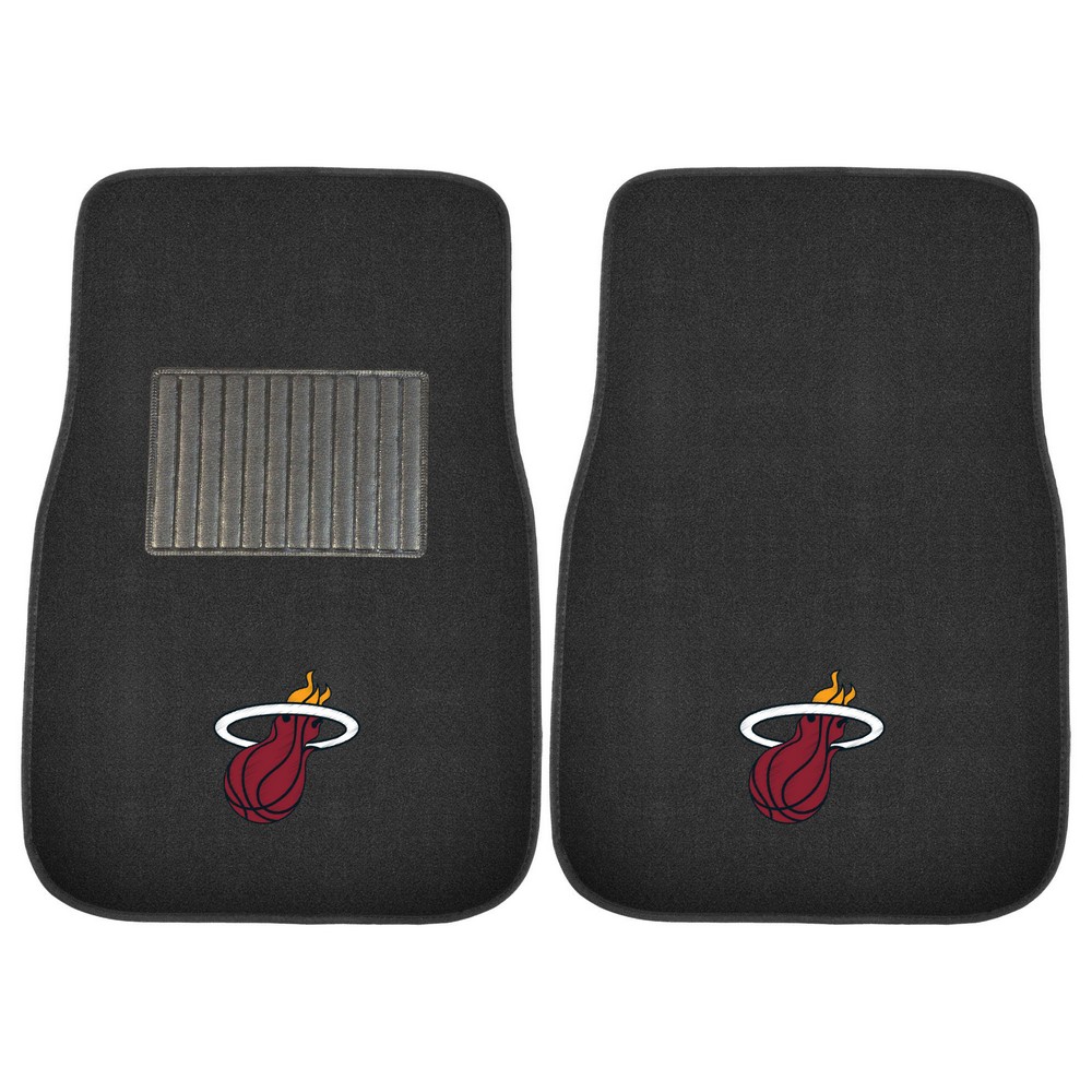| Miami Heat Embroidered Car Mat Set - 2 Pieces Made of polyester face with vinyl backing Embroidered team logo that will not peel or fade Nibbed backing keeps mat in place Heel pad on driver side, adds durability and provides extra safety Easily washed with a vacuum or water hose, just let them air dry Sold in pairs NBA - Miami Heat in Florida WARNING: This product can expose you to chemicals including, DINP, which is known to the State of California to casue cancer. For more information, go to www.P65Warnings.ca.gov NBA National Basketball Association |
