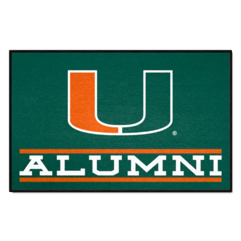 | Miami Hurricanes Starter Mat Accent Rug - 19in. x 30in. Alumni Starter Mat 9 Ounce, 100 % Nylon Face Recycled vinyl backing for a durable and longer-lasting product Machine made and tufted in the USA Non-skid backing with serged borders for added durability Machine washable; vacuum regularly and spot clean for any easy and quick clean Officially licensed and chromojet-printed in true team colors for vibrant, lasting color University of Miami in Florida |