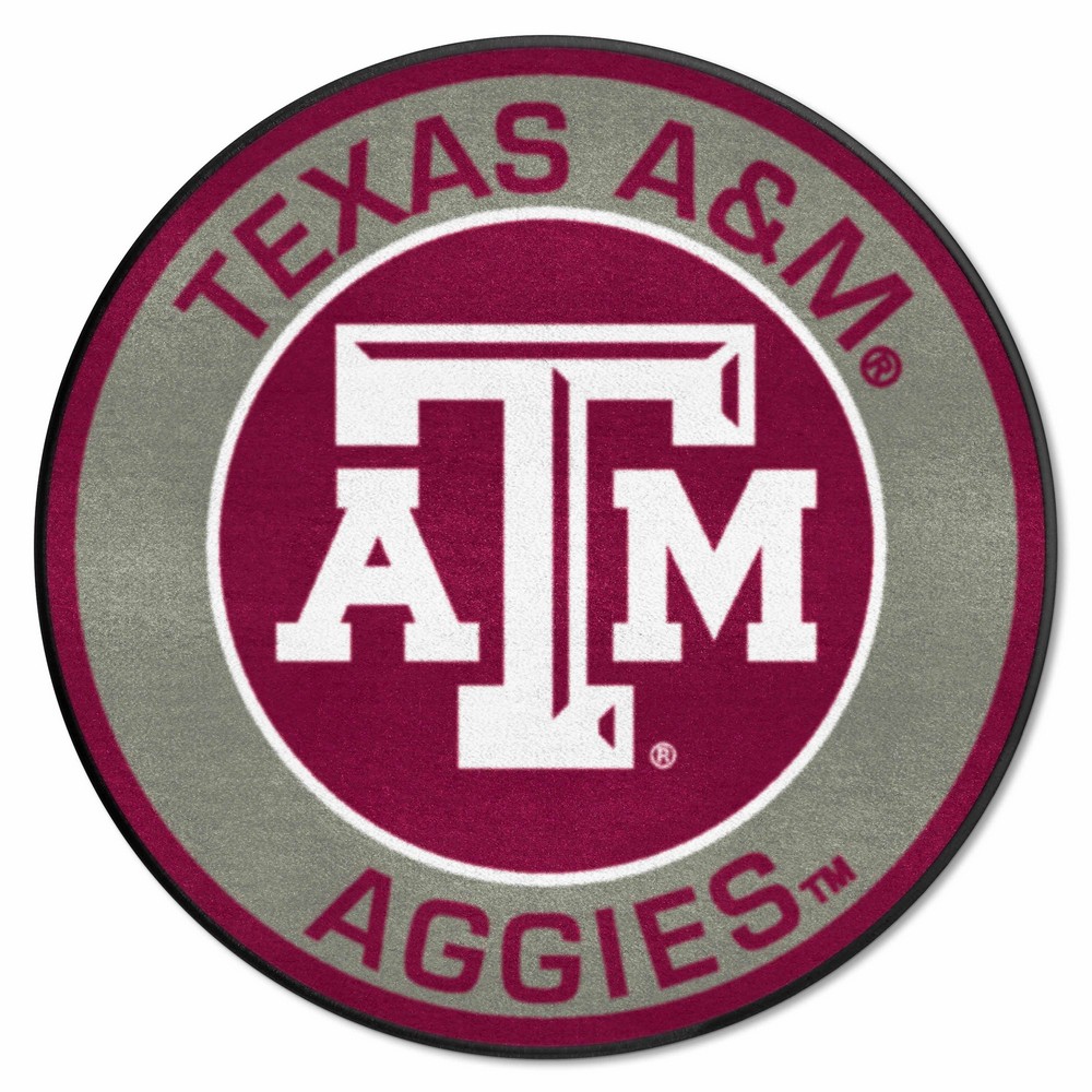 | Texas A&M Aggies Roundel Rug - 27in. Diameter 9 Ounce, 100 % Nylon Face Recycled vinyl backing for a durable and longer-lasting product Machine made and tufted in the USA Non-skid backing with taped borders for added durability Machine washable; vacuum regularly and spot clean for any easy and quick clean Officially licensed and chromojet-printed in true team colors for vibrant, lasting color Texas A&M University in Texas |