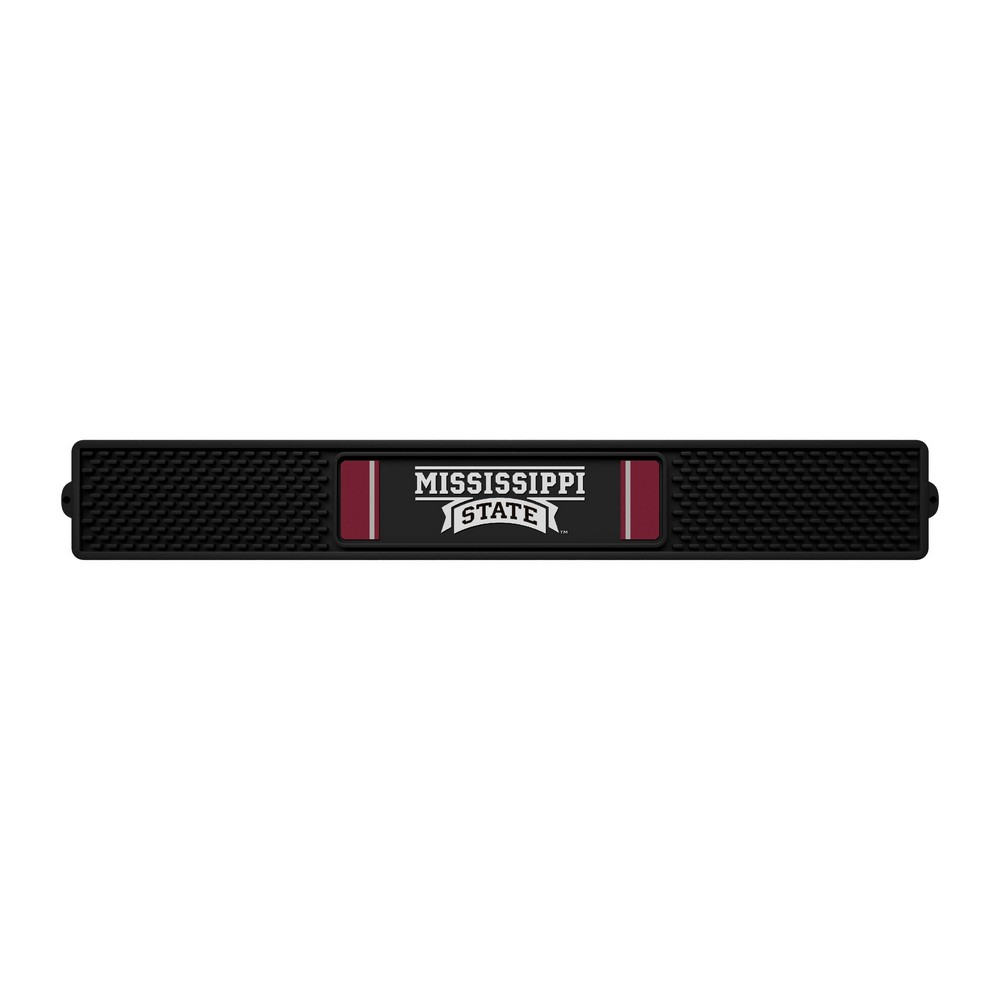 | Mississippi State Bulldogs Bar Drink Mat - 3.25in. x 24in. Durable vinyl construction 1/4" deep, holds liquids Easily cleaned, just run under the faucet Protects surfaces from spills and condensation 3-D logo molded in true team colors Made in the USA Mississippi State University in Mississippi WARNING: This product can expose you to chemicals including, DINP, which is known to the State of California to casue cancer. For more information, go to www.P65Warnings.ca.gov |