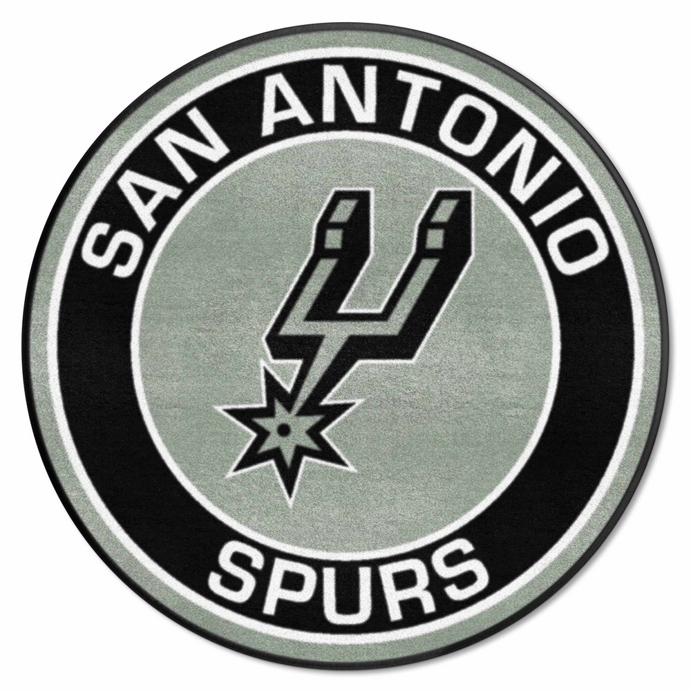 | San Antonio Spurs Roundel Rug - 27in. Diameter 9 Ounce, 100 % Nylon Face Recycled vinyl backing for a durable and longer-lasting product Machine made and tufted in the USA Non-skid backing with taped borders for added durability Machine washable; vacuum regularly and spot clean for any easy and quick clean Officially licensed and chromojet-printed in true team colors for vibrant, lasting color NBA - San Antonio Spurs in Texas NBA National Basketball Association |
