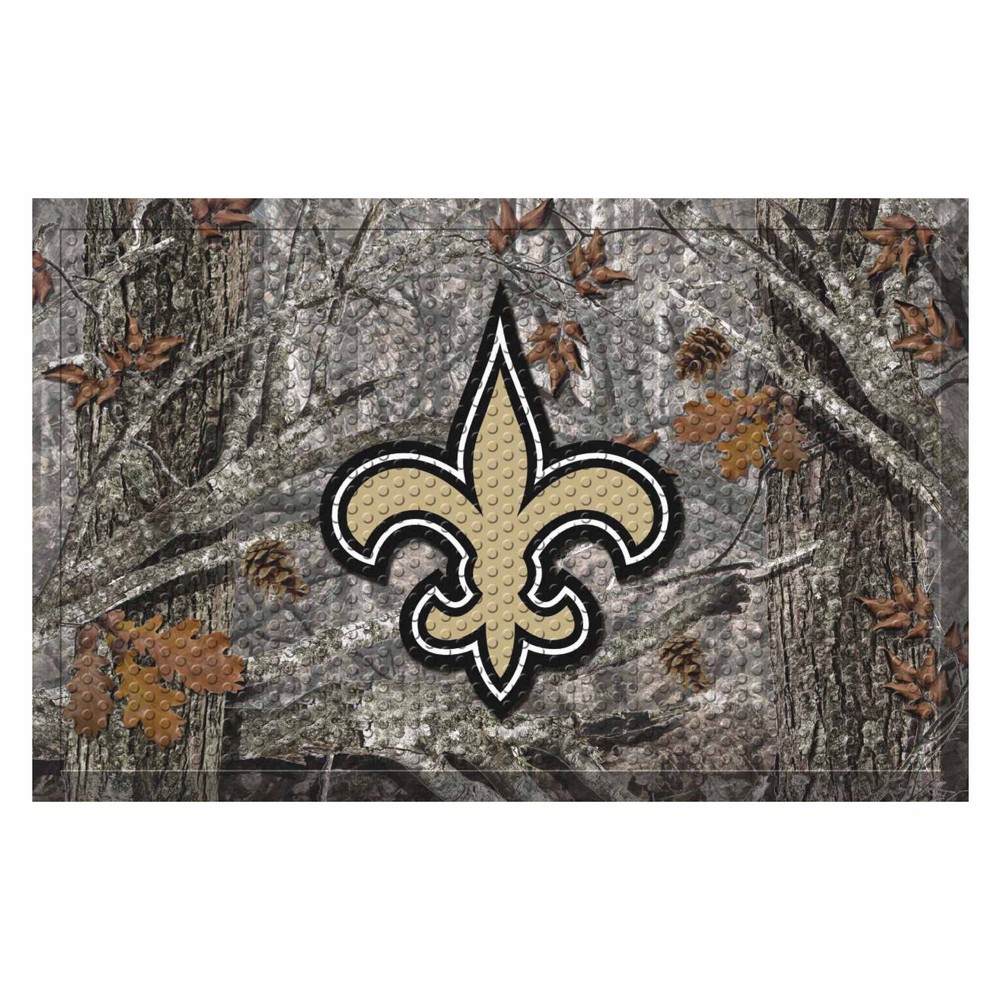 | New Orleans Saints Rubber Scraper Door Mat Camo Made of durable rubber Nibbed texture scrapes dirt, debris, and moisture from shoes Non-skid smooth backing keeps mat in place Dirt, debris, and moisture is trapped under the walking surface Easily cleaned with a water hose Mat features a realistic image NFL - New Orleans Saints in Louisiana WARNING: This product can expose you to chemicals including, DINP, which is known to the State of California to casue cancer. For more information, go to www.P65Warnings.ca.gov NFL National Football League |