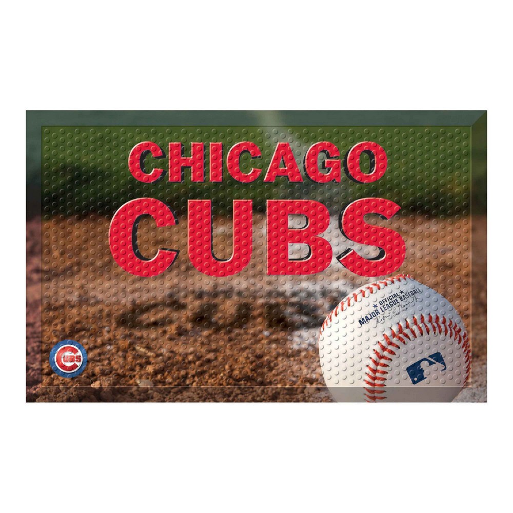 | Chicago Cubs Rubber Scraper Door Mat Made of durable rubber Nibbed texture scrapes dirt, debris, and moisture from shoes Non-skid smooth backing keeps mat in place Dirt, debris, and moisture is trapped under the walking surface Easily cleaned with a water hose Mat features a realistic image MLB - Chicago Cubs in Illinois WARNING: This product can expose you to chemicals including, DINP, which is known to the State of California to casue cancer. For more information, go to www.P65Warnings.ca.gov MLB Major League Baseball |