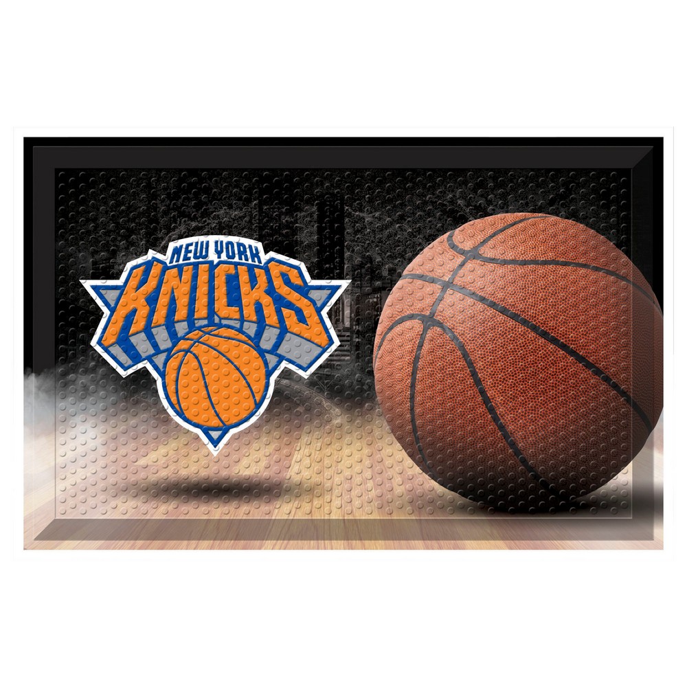 | New York Knicks Rubber Scraper Door Mat Made of durable rubber Nibbed texture scrapes dirt, debris, and moisture from shoes Non-skid smooth backing keeps mat in place Dirt, debris, and moisture is trapped under the walking surface Easily cleaned with a water hose Mat features a realistic image NBA - New York Knicks in New York WARNING: This product can expose you to chemicals including, DINP, which is known to the State of California to casue cancer. For more information, go to www.P65Warnings.ca.gov NBA National Basketball Association |