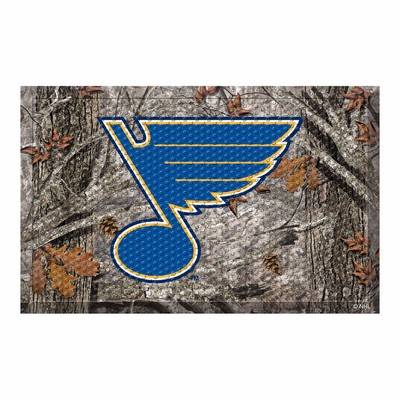 | St. Louis Blues Rubber Scraper Door Mat Camo Made of durable rubber Nibbed texture scrapes dirt, debris, and moisture from shoes Non-skid smooth backing keeps mat in place Dirt, debris, and moisture is trapped under the walking surface Easily cleaned with a water hose Mat features a realistic image NHL - St. Louis Blues in Missouri WARNING: This product can expose you to chemicals including, DINP, which is known to the State of California to casue cancer. For more information, go to www.P65Warnings.ca.gov NHL National Hockey League |