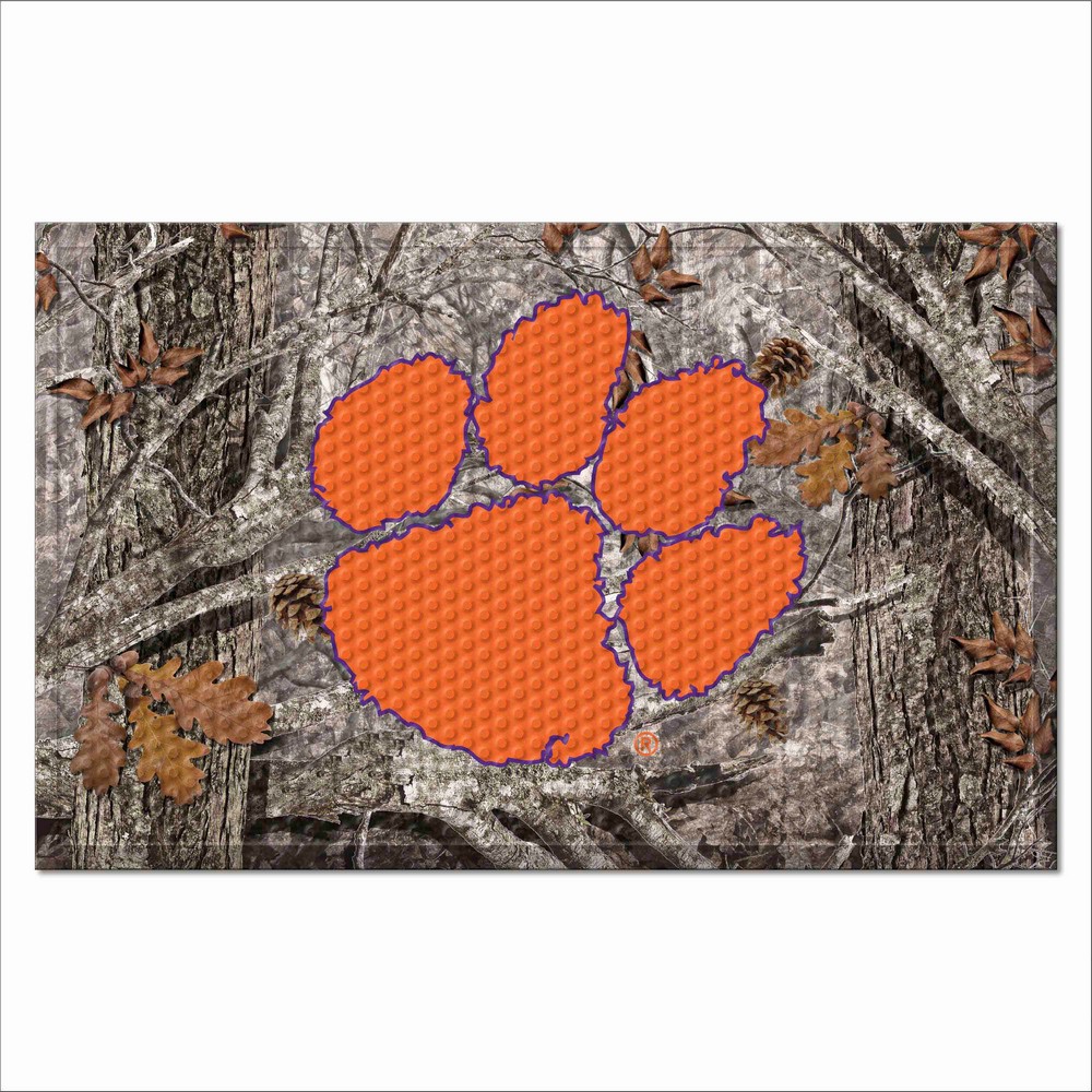 | Clemson Tigers Rubber Scraper Door Mat Camo Made of durable rubber Nibbed texture scrapes dirt, debris, and moisture from shoes Non-skid smooth backing keeps mat in place Dirt, debris, and moisture is trapped under the walking surface Easily cleaned with a water hose Mat features a realistic image Clemson University in South Carolina WARNING: This product can expose you to chemicals including, DINP, which is known to the State of California to casue cancer. For more information, go to www.P65Warnings.ca.gov |