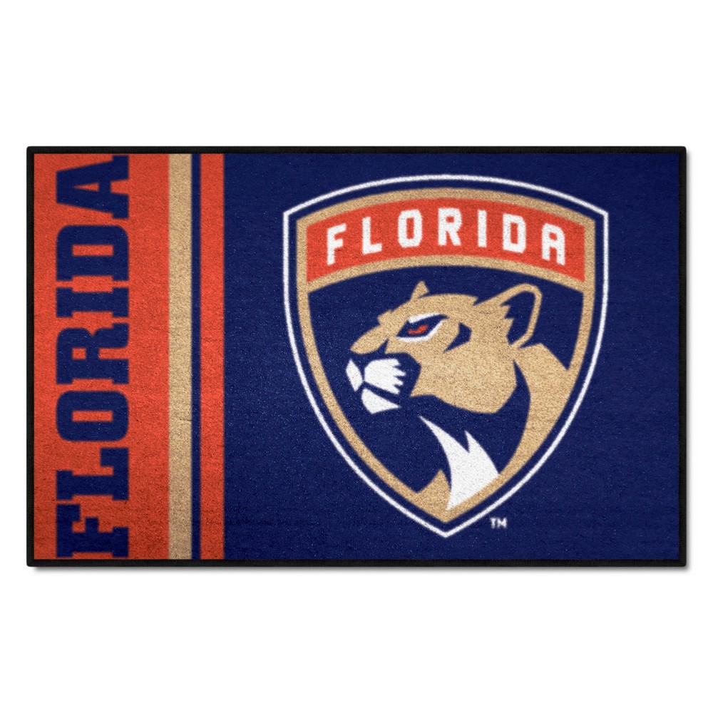 | Florida Panthers Starter Mat Accent Rug - 19in. x 30in., Uniform Design 9 Ounce, 100 % Nylon Face Recycled vinyl backing for a durable and longer-lasting product Machine made and tufted in the USA Non-skid backing with serged borders for added durability Machine washable; vacuum regularly and spot clean for any easy and quick clean Officially licensed and chromojet-printed in true team colors for vibrant, lasting color NHL - Florida Panthers in Florida NHL National Hockey League |