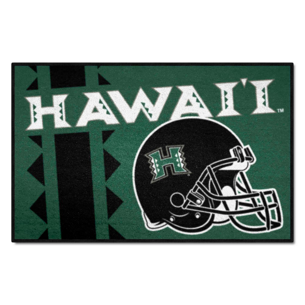 | Hawaii Rainbows Starter Mat Accent Rug - 19in. x 30in., Uniform Design 9 Ounce, 100 % Nylon Face Recycled vinyl backing for a durable and longer-lasting product Machine made and tufted in the USA Non-skid backing with serged borders for added durability Machine washable; vacuum regularly and spot clean for any easy and quick clean Officially licensed and chromojet-printed in true team colors for vibrant, lasting color University of Hawaii in Hawaii |