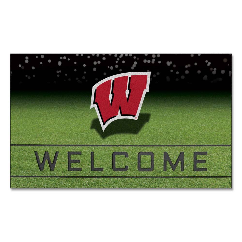 | Wisconsin Badgers Rubber Door Mat - 18in. x 30in. Heavy Duty rubber construction is durable for all weather True team colors Easily cleaned with broom or hose Non-skid rubber backing 3D Molded welcome stripe Flocked fiber surface University of Wisconsin in Wisconsin |