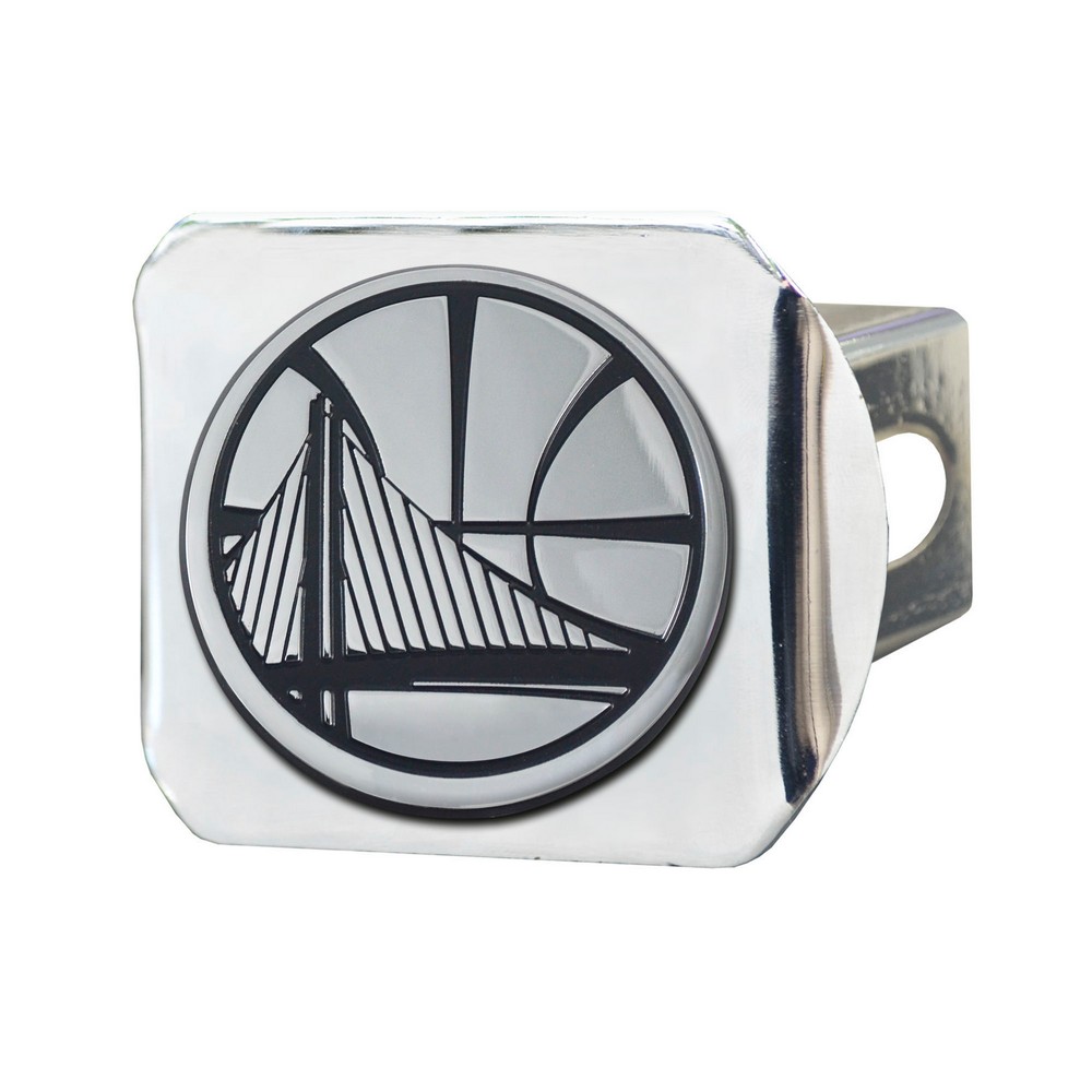 | Golden State Warriors Chrome Metal Hitch Cover with Chrome Metal 3D Emblem Completely wraps your hitch to keep all debris out Fits all 2 in. Class III hitches for a secure installation Made of chromed metal for a sleek design 3-D molded design to clearly outline the team logo Attaches without use of tools for an easy on and off; pin is not included Keeps your hitch clear of debris NBA - Golden State Warriors in California NBA National Basketball Association |