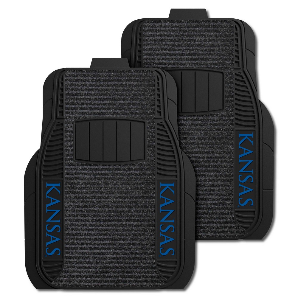 | Kansas Jayhawks 2 Piece Deluxe Car Mat Set Vinyl & dual ribbed charcoal carpet construction Dirt catching dual ribbed carpet Trimmable edges for a custom fit Nibbed backing keeps mats in place while driving for added safety Molded logos in true team colors Deep pockets catch and hold dirt and water University of Kansas in Kansas WARNING: This product can expose you to chemicals including, DINP, which is known to the State of California to casue cancer. For more information, go to www.P65Warnings.ca.gov |