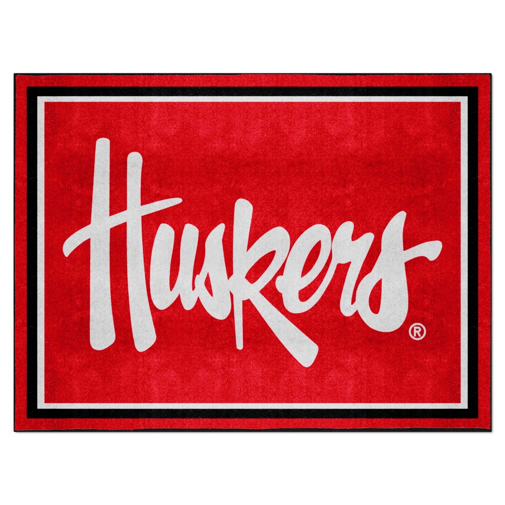 | Nebraska Cornhuskers 8ft. x 10 ft. Plush Area Rug, "Huskers" 23.5 oz., 100% Nylon Face Latex backing for a durable and longer-lasting product Machine made in the USA Non-skid backing to ensure stability Vacuum regularly and spot clean Chromojet-printed in true team colors University of Nebraska in Nebraska |