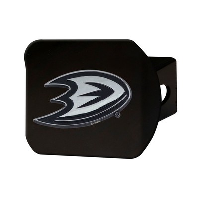 | Anaheim Ducks Black Metal Hitch Cover with Metal Chrome 3D Emblem Completely wraps your hitch to keep all debris out Fits all 2 in. Class III hitches for a secure installation Made of metal with a black finish for added style and protection 3-D molded design to clearly outline the team logo Attaches without use of tools for an easy on and off; pin is not included Keeps your hitch clear of debris NHL - Anaheim Ducks in California NHL National Hockey League |
