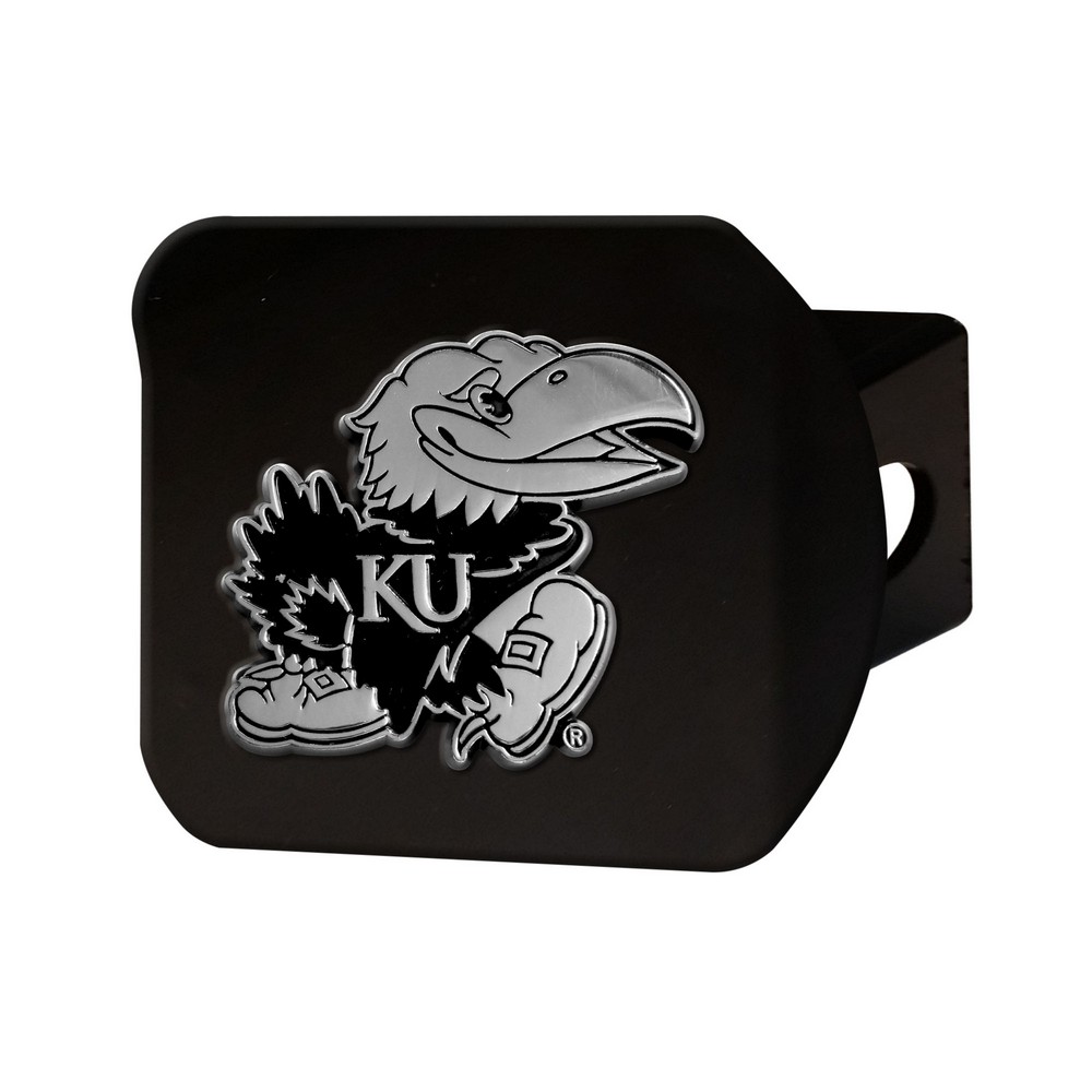 | Kansas Jayhawks Black Metal Hitch Cover with Metal Chrome 3D Emblem Completely wraps your hitch to keep all debris out Fits all 2 in. Class III hitches for a secure installation Made of metal with a black finish for added style and protection 3-D molded design to clearly outline the team logo Attaches without use of tools for an easy on and off; pin is not included Keeps your hitch clear of debris University of Kansas in Kansas |