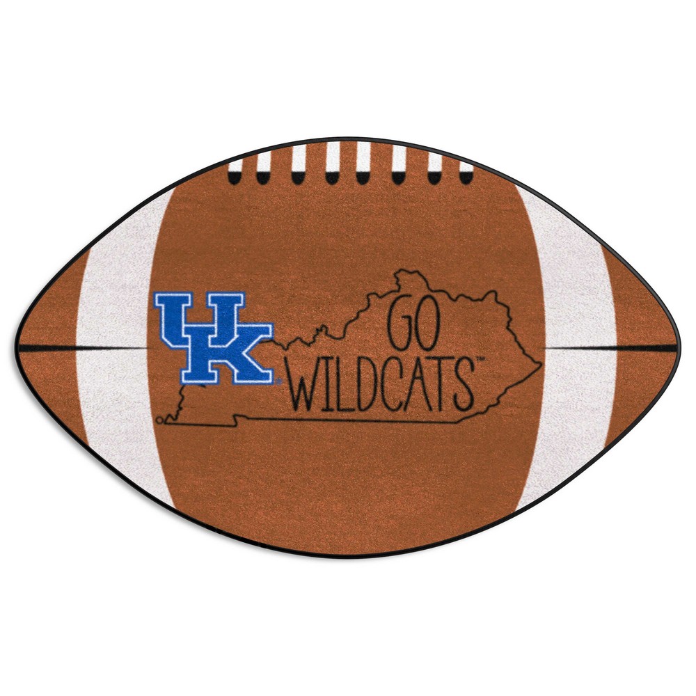 | Kentucky Wildcats Southern Style Football Rug - 20.5in. x 32.5in. 9 Ounce, 100 % Nylon Face Recycled vinyl backing for a durable and longer-lasting product Machine made and tufted in the USA Non-skid backing with taped borders for added durability Machine washable; vacuum regularly and spot clean for any easy and quick clean Officially licensed and chromojet-printed in true team colors for vibrant, lasting color University of Kentucky in Kentucky |