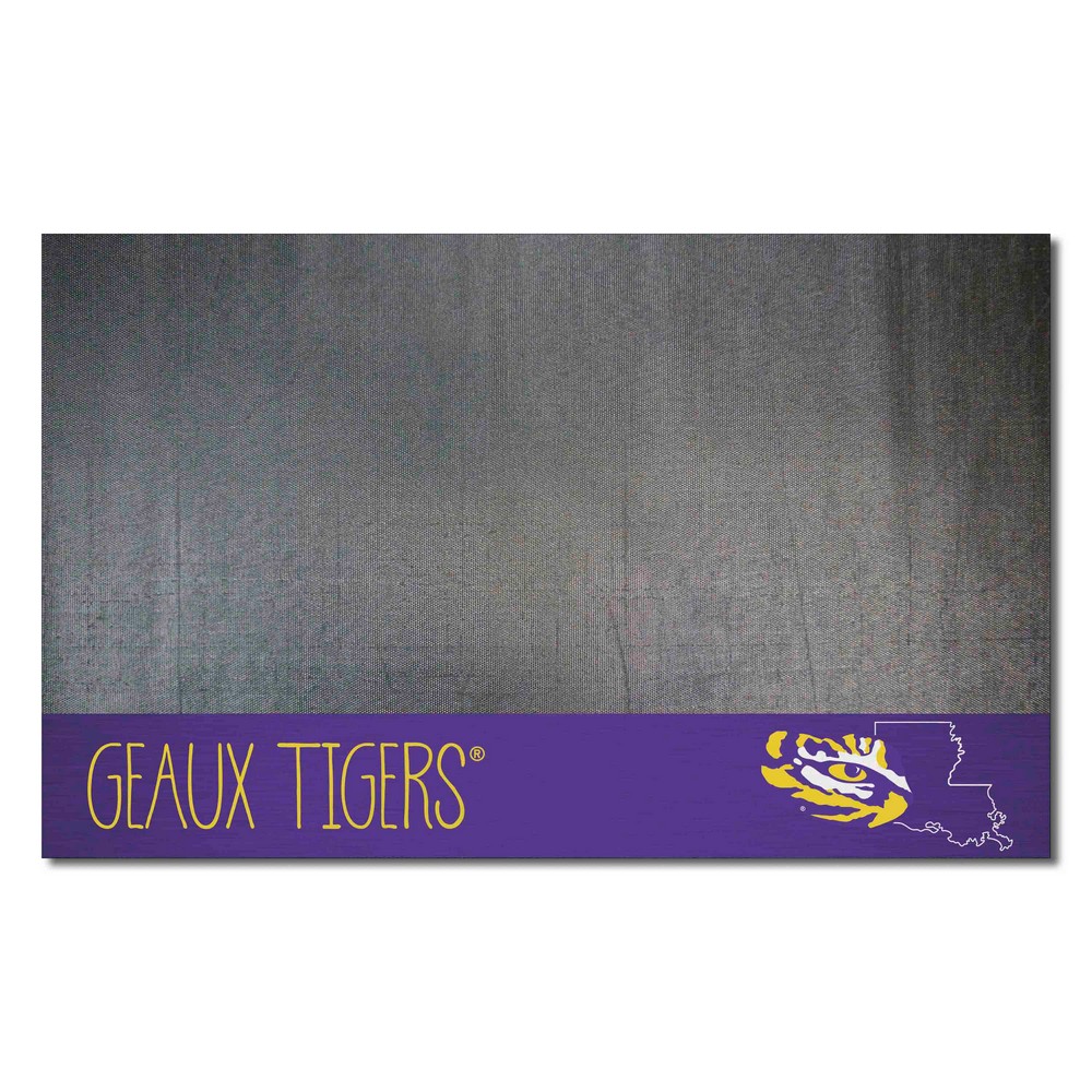 | LSU Tigers Southern Style Vinyl Grill Mat - 26in. x 42in. Made of 100% vinyl Universal size - fits under most grills Prevents spills from soaking in and staining Oil, flame, and UV resistant Non-skid surface keeps grill in place Easily cleaned with a water hose Louisiana State University in Louisiana |