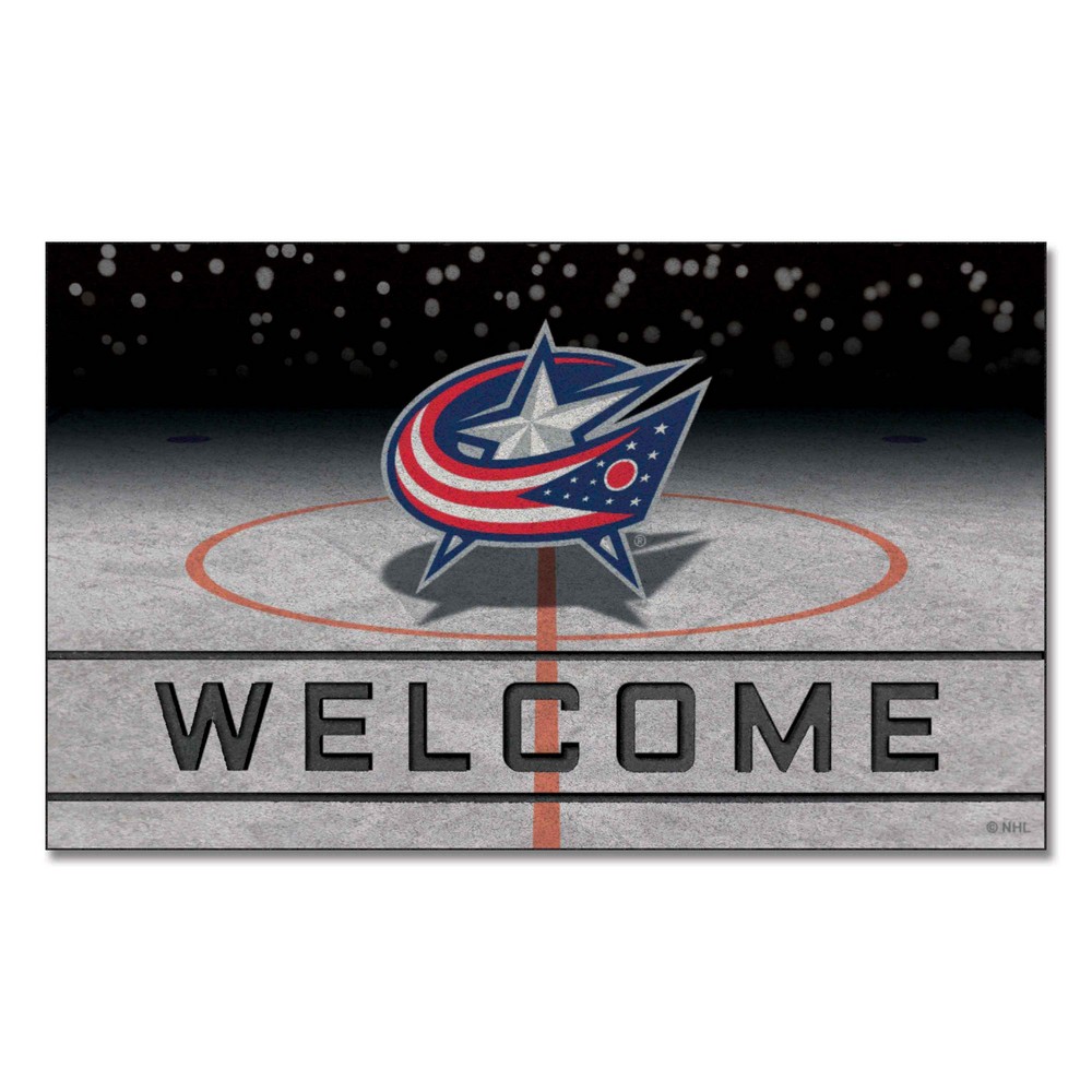 | Columbus Blue Jackets Rubber Door Mat - 18in. x 30in. Heavy Duty rubber construction is durable for all weather True team colors Easily cleaned with broom or hose Non-skid rubber backing 3D Molded welcome stripe Flocked fiber surface NHL - Columbus Blue Jackets in Ohio NHL National Hockey League |