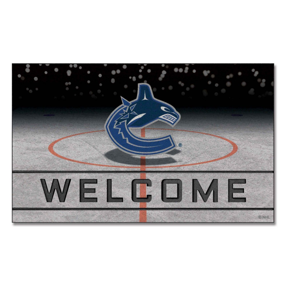 | Vancouver Canucks Rubber Door Mat - 18in. x 30in. Heavy Duty rubber construction is durable for all weather True team colors Easily cleaned with broom or hose Non-skid rubber backing 3D Molded welcome stripe Flocked fiber surface NHL - Vancouver Canucks in British Columbia NHL National Hockey League |