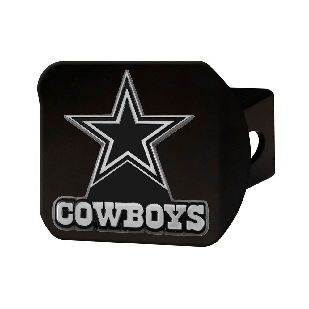| Dallas Cowboys Black Metal Hitch Cover with Metal Chrome 3D Emblem Completely wraps your hitch to keep all debris out Fits all 2 in. Class III hitches for a secure installation Made of metal with a black finish for added style and protection 3-D molded design to clearly outline the team logo Attaches without use of tools for an easy on and off; pin is not included Keeps your hitch clear of debris NFL - Dallas Cowboys in Texas NFL National Football League |