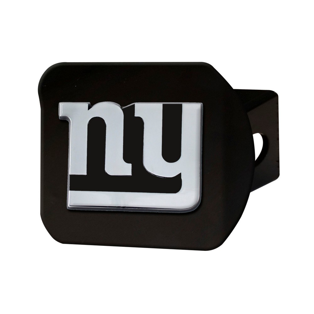 | New York Giants Black Metal Hitch Cover with Metal Chrome 3D Emblem Completely wraps your hitch to keep all debris out Fits all 2 in. Class III hitches for a secure installation Made of metal with a black finish for added style and protection 3-D molded design to clearly outline the team logo Attaches without use of tools for an easy on and off; pin is not included Keeps your hitch clear of debris NFL - New York Giants in New Jersey NFL National Football League |