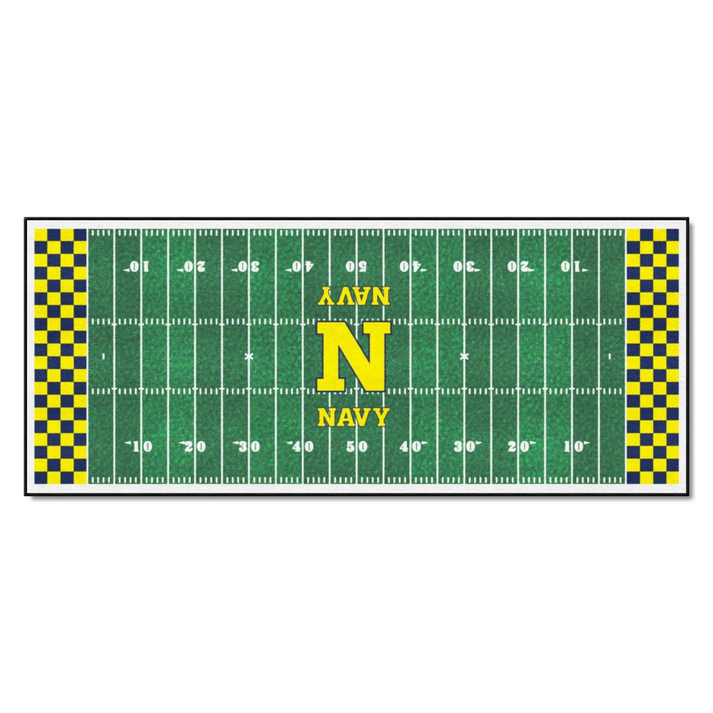| Naval Academy Field Runner Mat - 30in. x 72in. 9 Ounce, 100 % Nylon Face Recycled vinyl backing for a durable and longer-lasting product Machine made and tufted in the USA Non-skid backing with serged borders for added durability Machine washable; vacuum regularly and spot clean for any easy and quick clean Officially licensed and chromojet-printed in true team colors for vibrant, lasting color U.S. Naval Academy in Maryland |