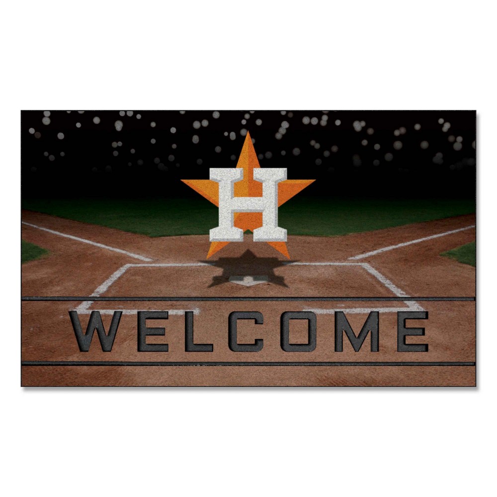 | Houston Astros Rubber Door Mat - 18in. x 30in. Heavy Duty rubber construction is durable for all weather True team colors Easily cleaned with broom or hose Non-skid rubber backing 3D Molded welcome stripe Flocked fiber surface MLB - Houston Astros in Texas MLB Major League Baseball |
