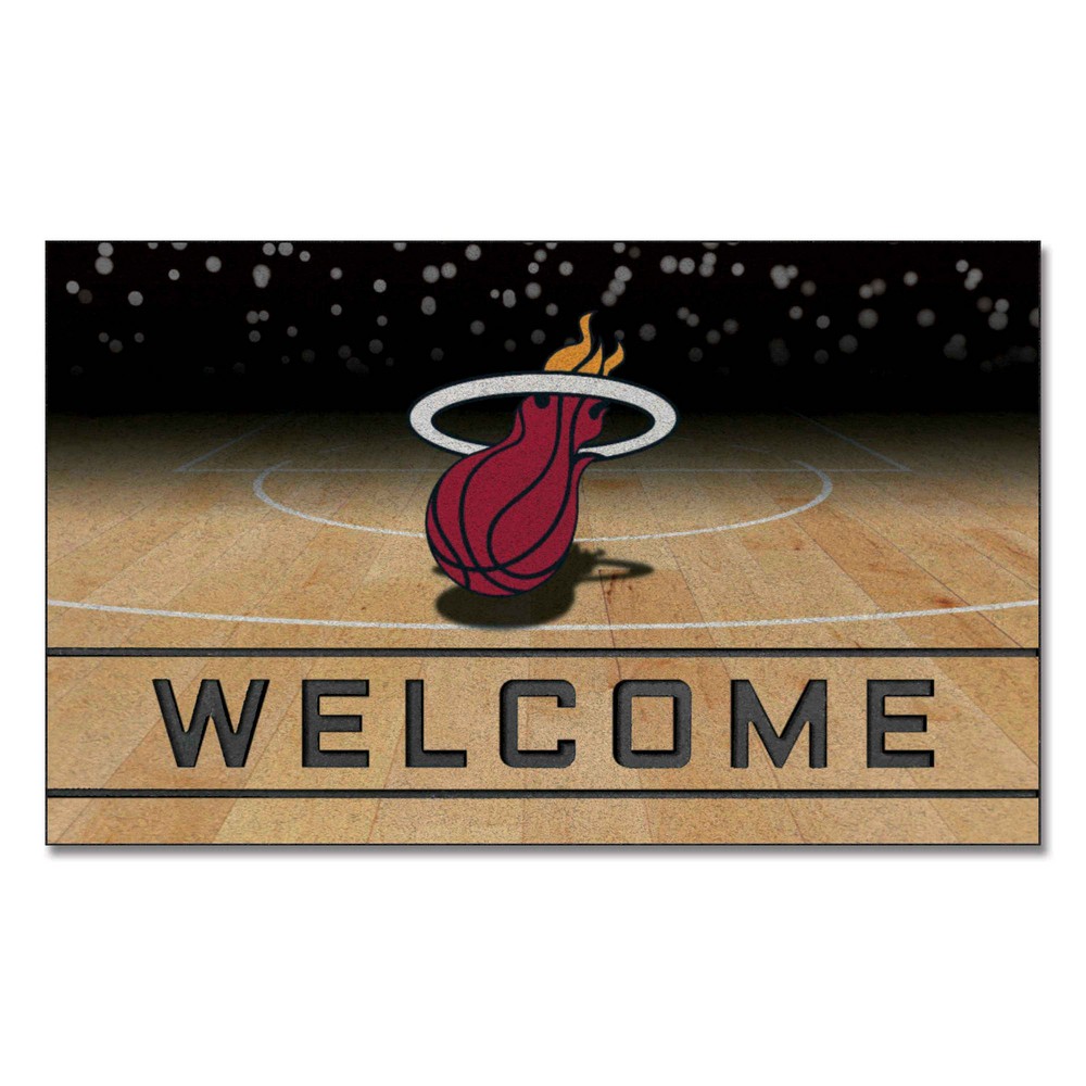 | Miami Heat Rubber Door Mat - 18in. x 30in. Heavy Duty rubber construction is durable for all weather True team colors Easily cleaned with broom or hose Non-skid rubber backing 3D Molded welcome stripe Flocked fiber surface NBA - Miami Heat in Florida NBA National Basketball Association |