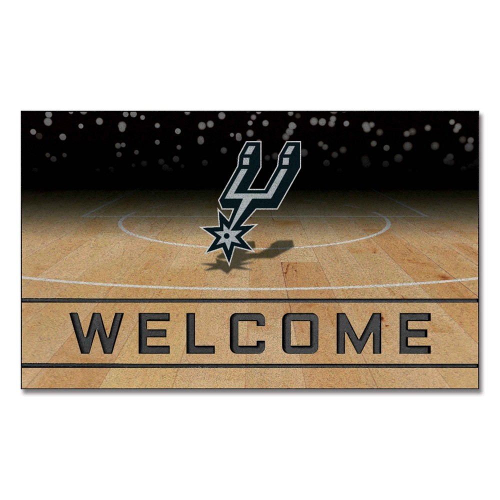 | San Antonio Spurs Rubber Door Mat - 18in. x 30in. Heavy Duty rubber construction is durable for all weather True team colors Easily cleaned with broom or hose Non-skid rubber backing 3D Molded welcome stripe Flocked fiber surface NBA - San Antonio Spurs in Texas NBA National Basketball Association |